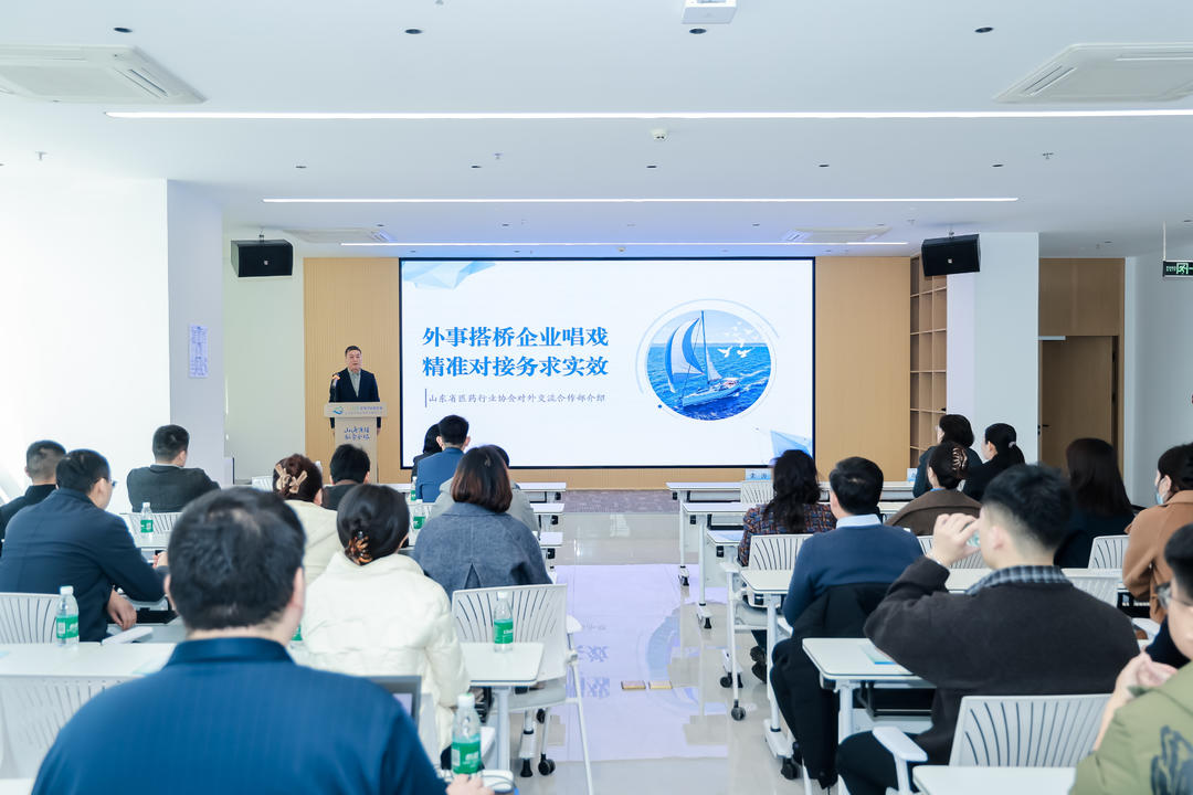 在主题分享环节,山东省医药行业协会国际合作交流部主任崔峰结合外事资源转化实践,提出“外事搭桥、企业唱戏”的精准对接路径;科兴制药国外营销事业部BD总监杜明军系统介绍了“药出海”平台业务新模式,为生物医药国际化提供了可复制的范本;宏济堂制药国际贸易公司副总经理岳相莹围绕中医药“借澳出海”的政策红利与实操经验,剖析了中医药国际化的独特路径;梅晔生物国际化业务总监贾鹏则以护肤品企业为切入点,分享了医美健康类产品出海的探索与思考。四场分享覆盖化学药、生物药、中药及护肤品等多个细分领域,既有战略高度又有实操深度,为企业“走出去”提供了宝贵的方向指引和经验借鉴。在交流与业务对接环节,参会企业与嘉宾深入洽谈,现场气氛热烈,达成多项初步合作意向。