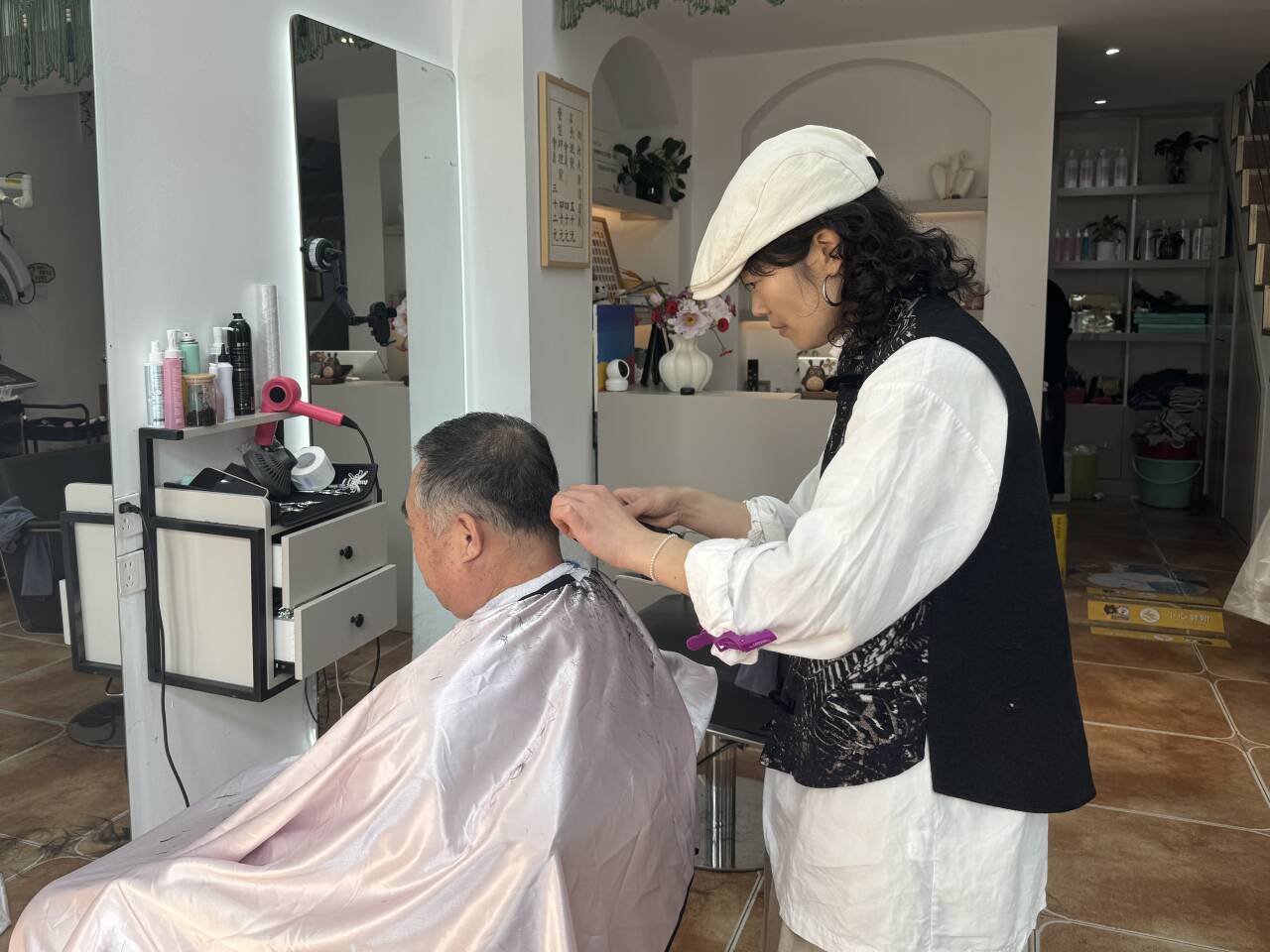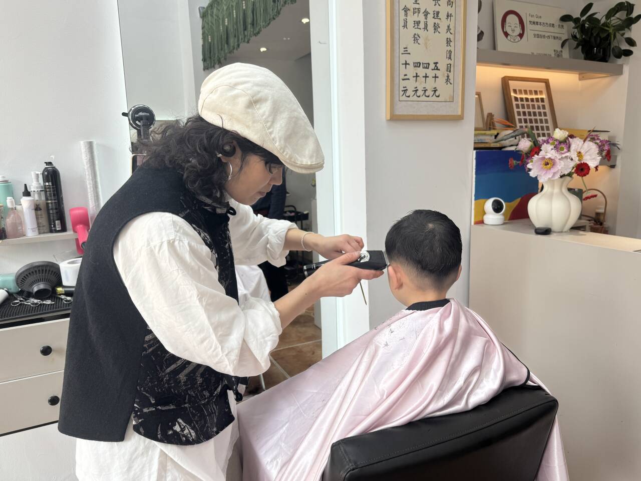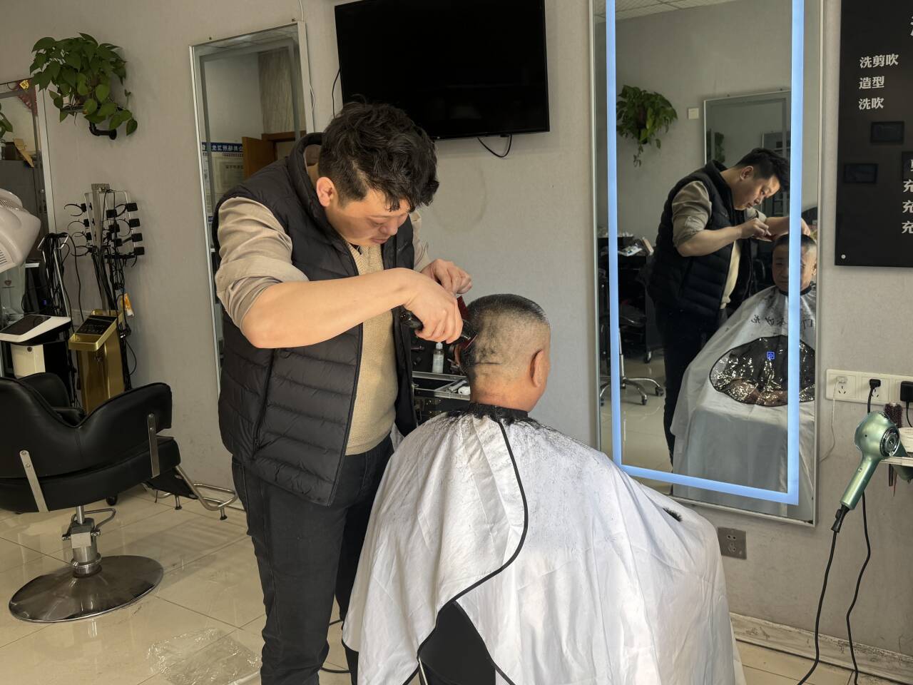 李沧区汉川路尚轩美发老板仝女士给大人“剃龙头”