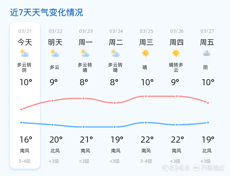 未来三天,泰安市天气趋势总体平稳。周一至周三,天气以多云转晴为主,气温逐渐回升,最高气温将达到21℃,最低气温为8℃。预计周三白天风力较大,市民需注意防范。此外,未来三天空气质量总体较好,但PM2.5指数仍需关注。