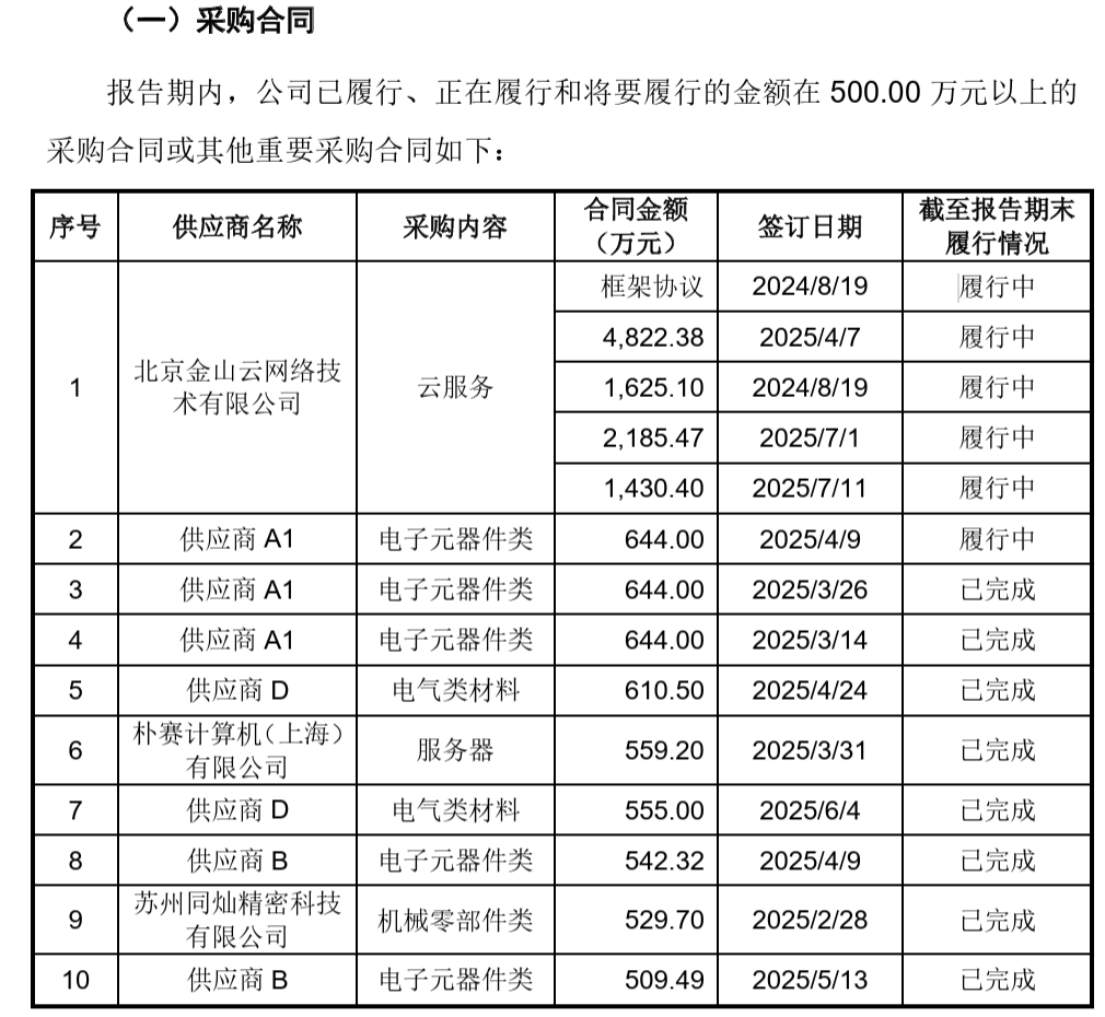 客户方面,宇树向北京金山云网络技术有限公司采购了云服务,订单金额近亿元。