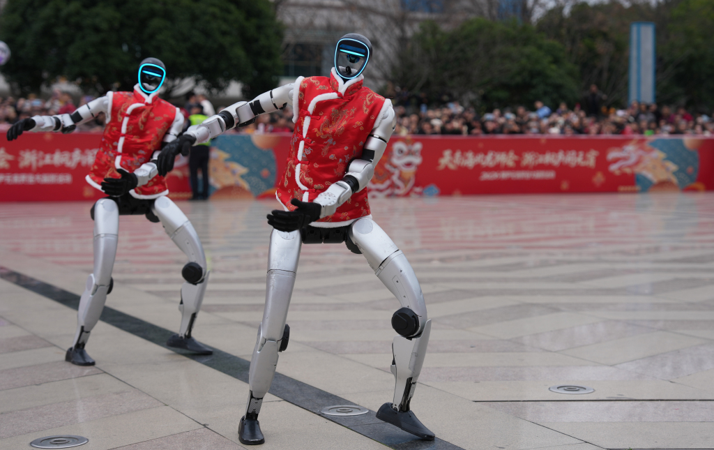 2026年2月28日,宇树科技人形机器人在浙江省桐庐县中心广场表演舞蹈。 本文图均为新华社资料图