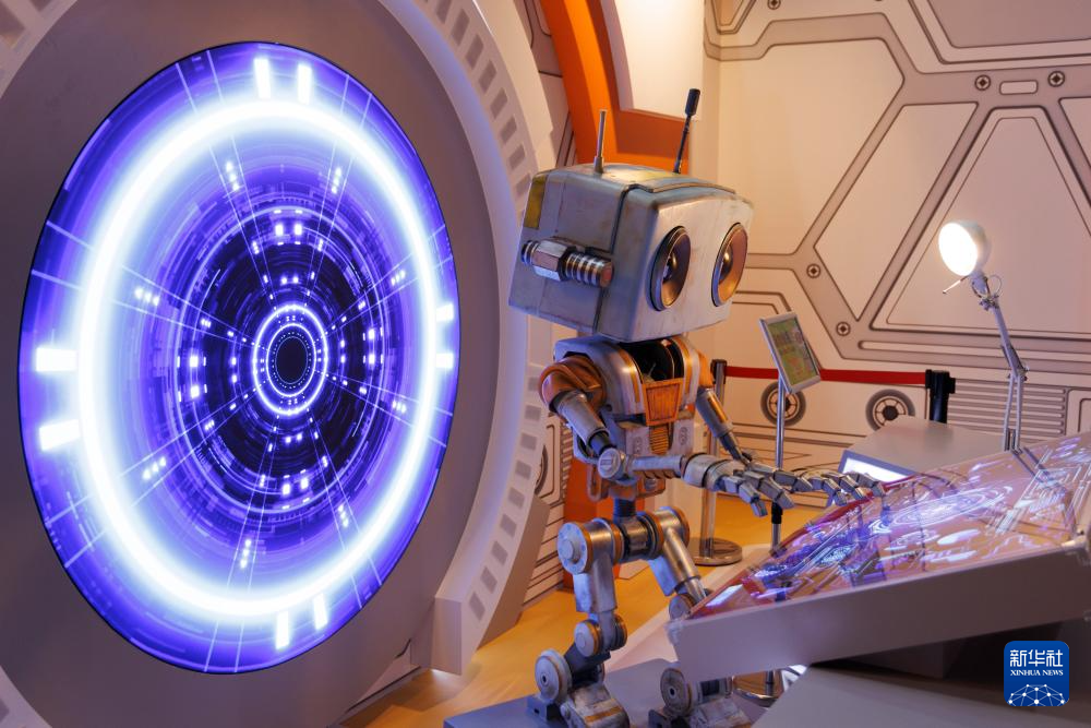 在中国科学技术馆《Project X:星际友好计划》航天科幻扩展现实(XR)大空间体验展拍摄的人工智能机器人星启8号。新华社记者 金立旺摄