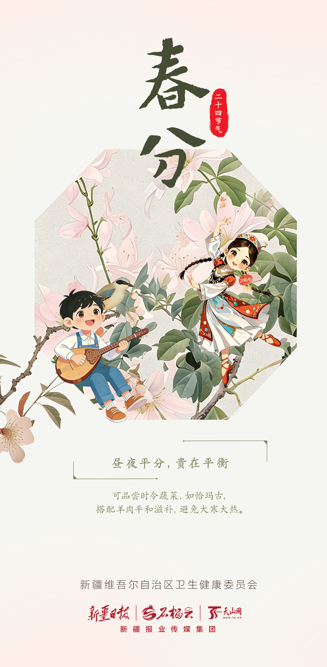 昼夜平分,贵在平衡。可品尝时令蔬菜,如恰玛古,搭配羊肉平和滋补,避免大寒大热。
