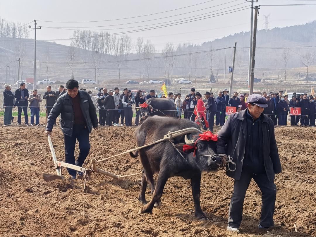 “咧咧,啦啦,吁……”在闹春牛耕牛比赛现场,78岁的庄会明喊起地道的使牛号子,耕牛闻声而动,耢耙耕作一气呵成。头发花白、腰背已躬的他,是现场一众使牛人中技艺最娴熟的老者之一。