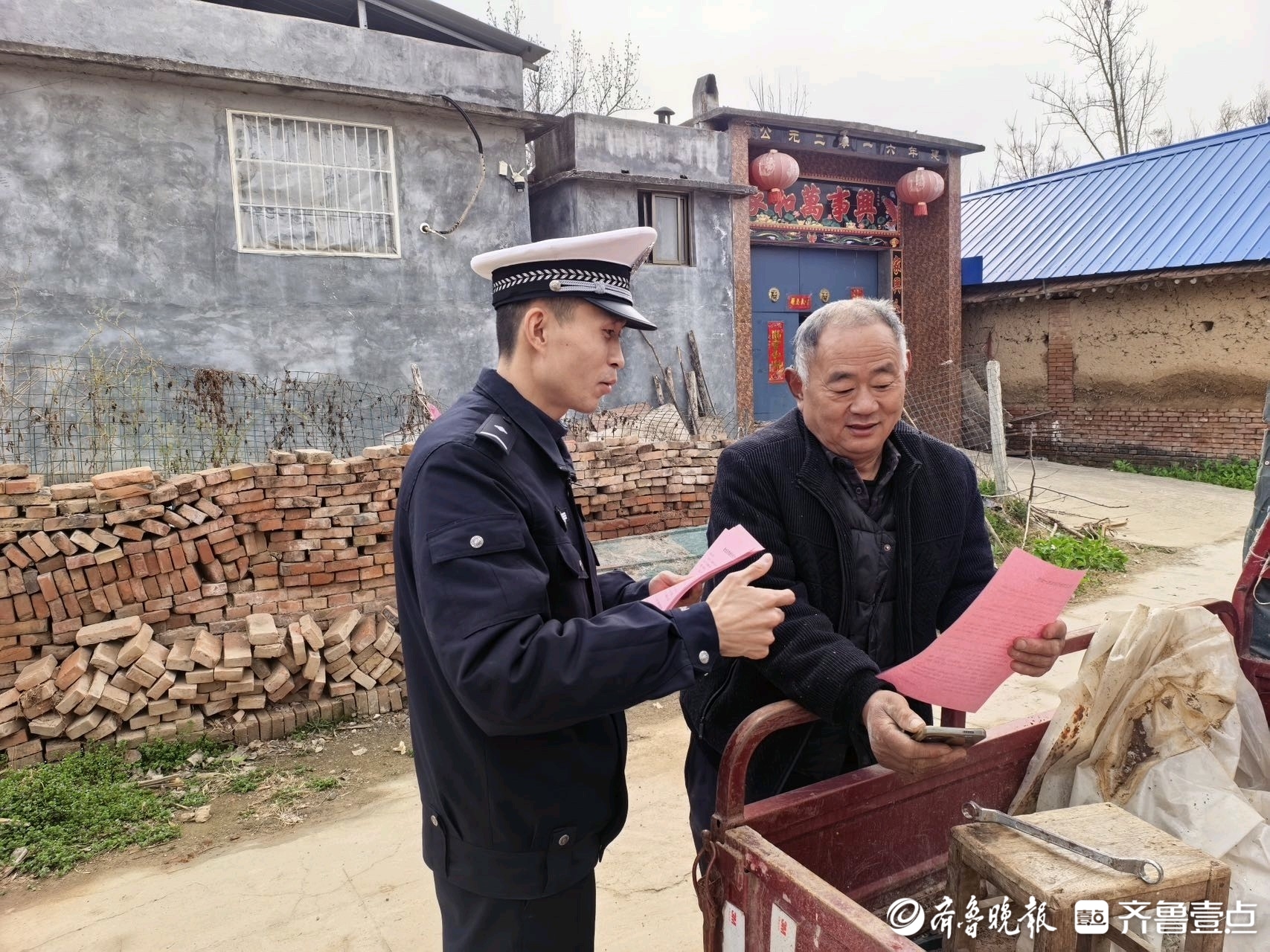 此外,宣传人员还走进农户家中,与村民进行面对面交流,普及农用车辆出行安全常识。考虑到村内老年群体的特点,宣传人员特别提醒他们在骑行三轮车代步时要注意观察路况。通过这些举措,引导村民自觉遵守交通法规,摒弃交通陋习。