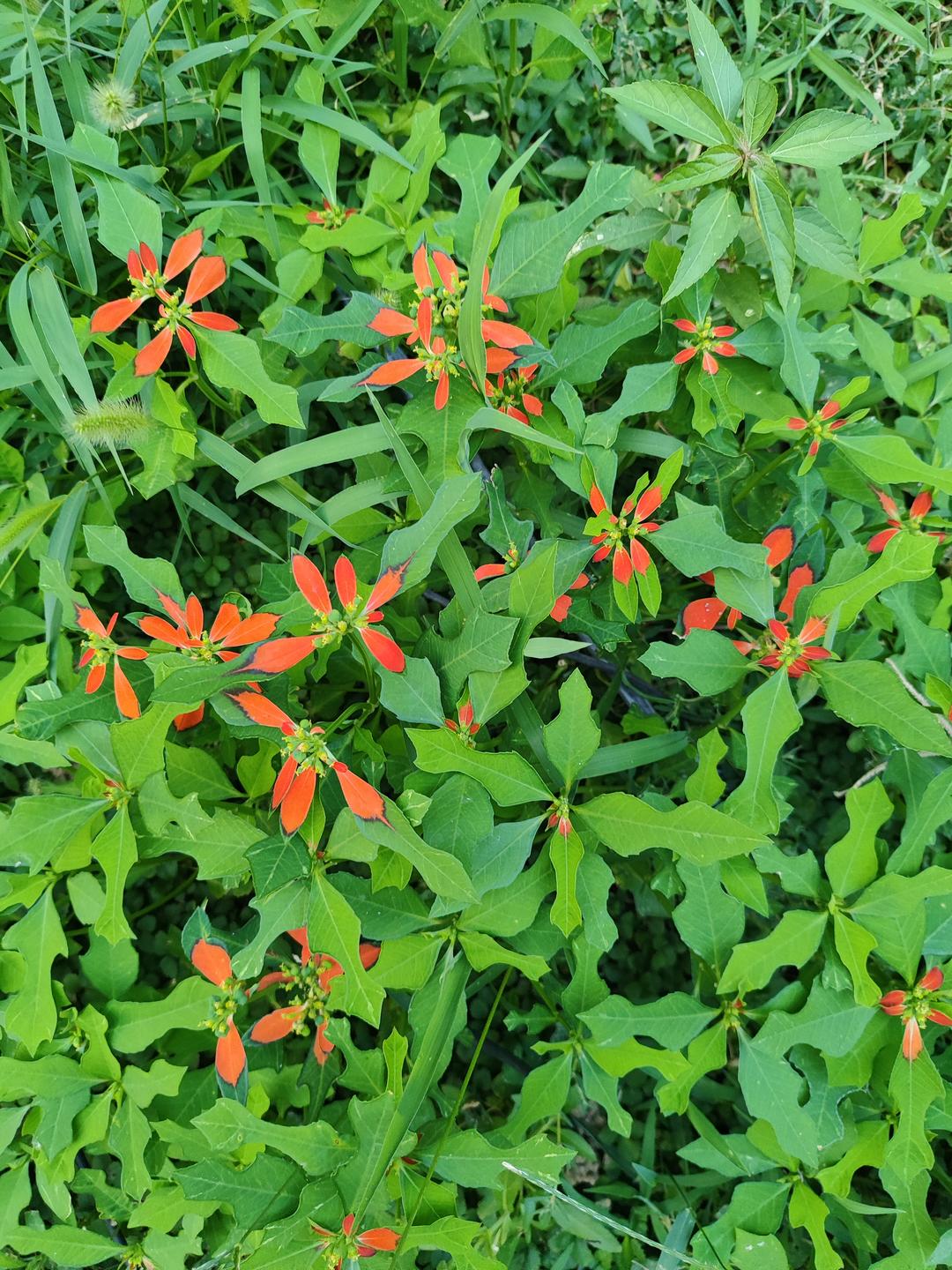 百草园的花草种群日益壮大。不少鸟儿来此筑巢、觅食,麻雀、斑鸠、乌鸫、白头翁,都是这里的常客;偶尔还能看到一两只色彩艳丽的黄鹂鸟和太平鸟。鸟儿的到访,不仅让害虫踪迹全无,还将之前不曾见过的花草种子带了进来,然后发芽、生根、开花,不时地刷新着大家的认知。蛇莓、猩猩草、饭包草,是这几年新增的成员。若到五月前后,一大片一大片如地毯般平整的蛇莓,会在密密匝匝绿叶的衬托下绽放出鹅黄色的花朵,不几日,鲜红娇嫩的果实便醒目地昂扬起来,引得孩子们竞逐采摘、鸟儿争相啄食。猩猩草株形优美,花期从春至秋,花色独特娇艳,花瓣内红外绿,令人赏心悦目。