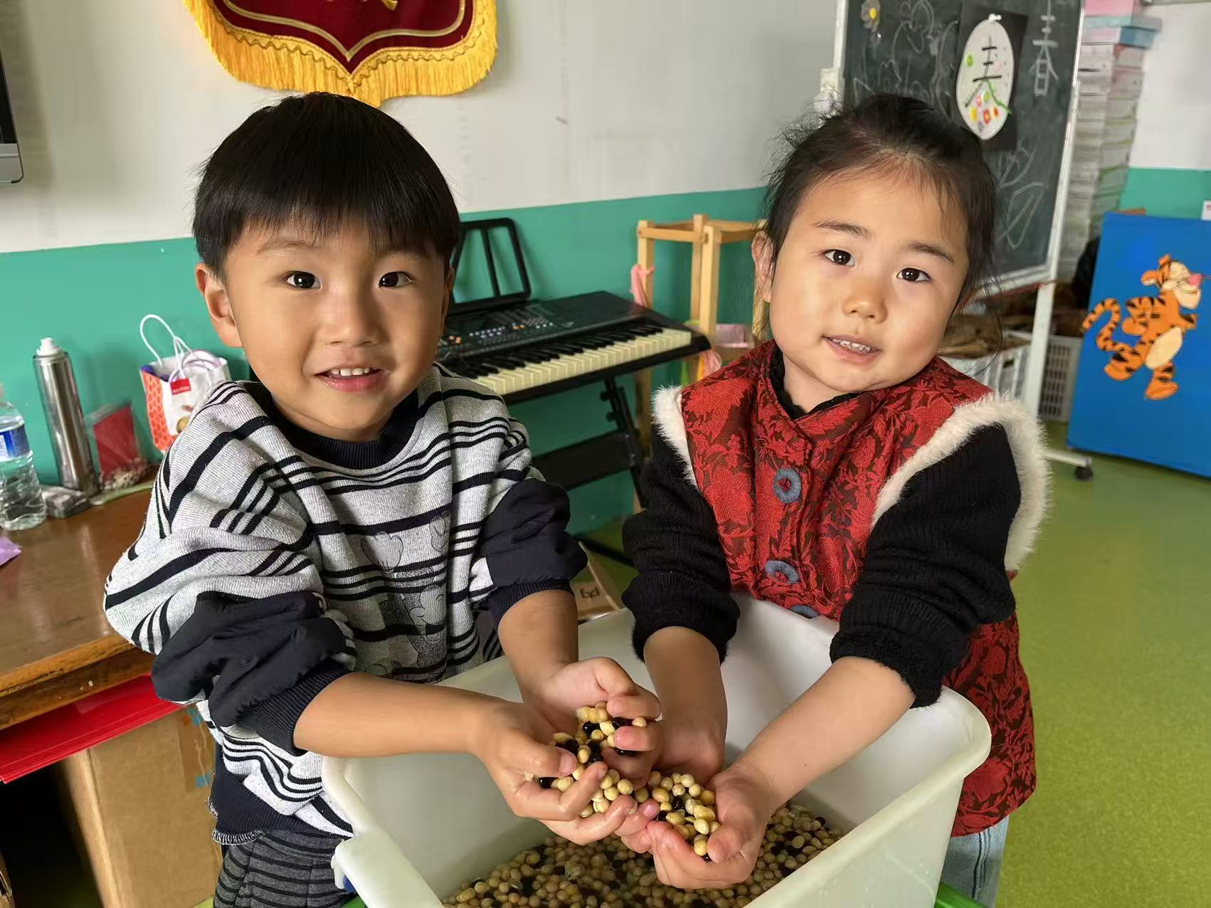 “二月二,炒豆豆,一年好运从头有。”炒豆子是二月二极具代表性的民俗活动,幼儿园里,孩子们化身“小小美食家”,沉浸式体验洗豆子、煮豆子、炒豆子的完整过程。清水洗净的豆子饱满圆润,慢火炖煮后软糯清香,翻炒时锅里滋滋作响、香气四溢,每一个步骤都让孩子们充满期待。亲手制作的炒豆格外香甜,孩子们互相分享、共同品尝,在分享的快乐中感受节日的甜蜜与温暖,也在实践中体会劳动的乐趣。