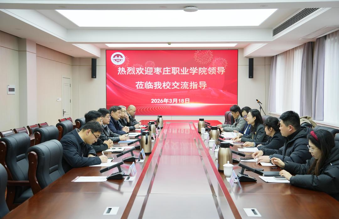 为加强校际资源共享和经验互鉴,探索产教融合新路径,3月18日下午,枣庄职业学院副院长张蓝兮一行6人前往枣庄经济学校开展调研交流。枣庄经济学校党委副书记、校长梁克忠,党委委员、副校长刘宇靖,党委委员李忠民及相关系、部负责人陪同考察并参加座谈。