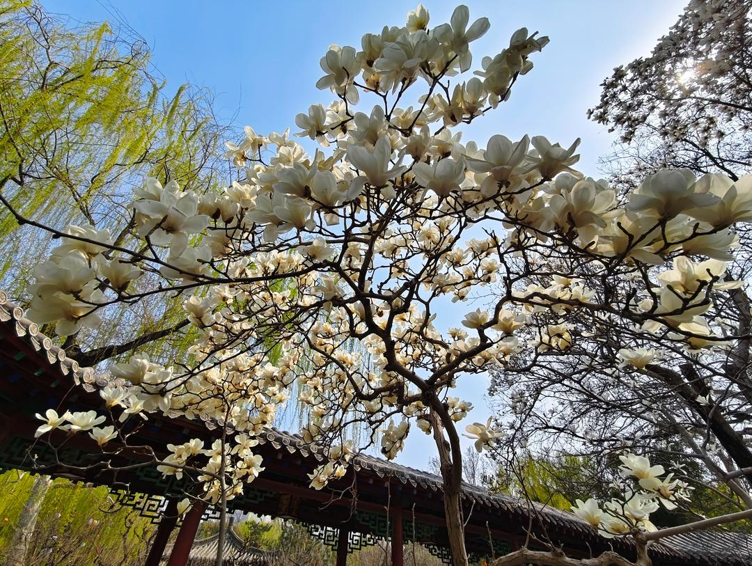 21日,记者来到济南趵突泉。暖阳斜照,景区内千花竞放,白的玉兰、嫩黄的迎春、粉的梅花,缀满亭台楼阁间,一簇簇、一丛丛,沾着晨露,映着泉光,美得清婉又灵动。微风拂过,花香漫溢,与泉水的清冽交织,漫过青石小径,漫过朱红亭廊,沁人心脾。