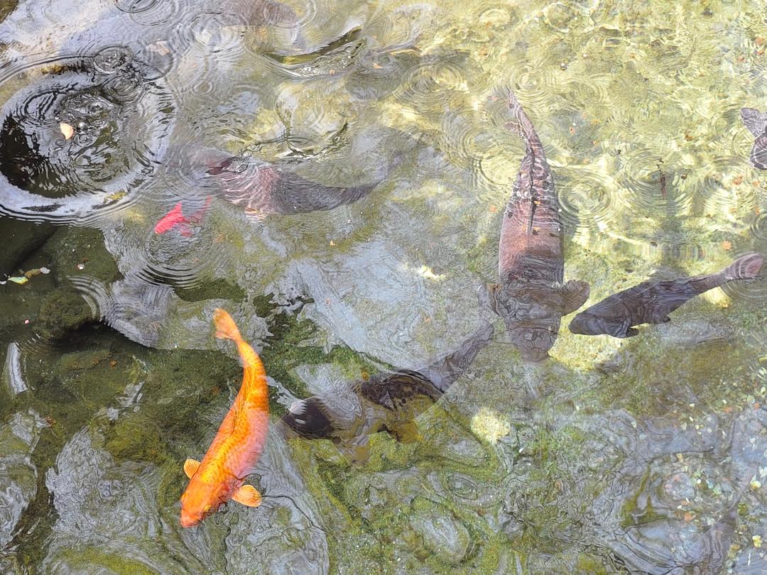 三股泉水汩汩喷涌,池中游鱼往来翕忽,或成群嬉戏,或独自悠游,金的、红的、黑的,身影在碧波中穿梭,搅碎了水面的光影,也搅活了一池春韵。偶尔有花瓣飘落,浮在水面,随泉水轻淌,与游鱼相映,成了春日里最鲜活的景致,藏着济南独有的泉韵与春欢。