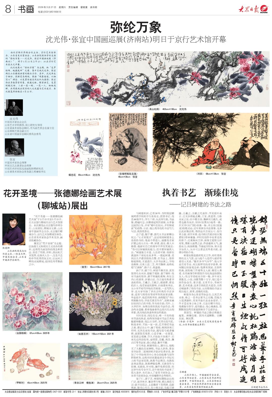 由北京银行济南分行主办、京行艺术馆承办,山东省美术家协会、山东画院提供学术支持的“弥纶万象——沈光伟、张宜中国画巡展(济南站)”,将于3月22日上午10:30在京行艺术馆正式开幕。