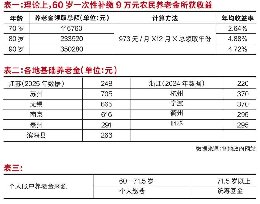 如果以投资回报率去衡量农民养老金的一次性补缴,收益也相当可观。