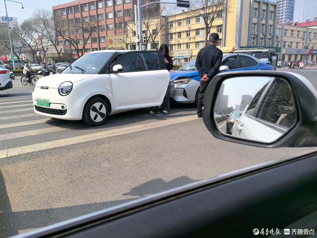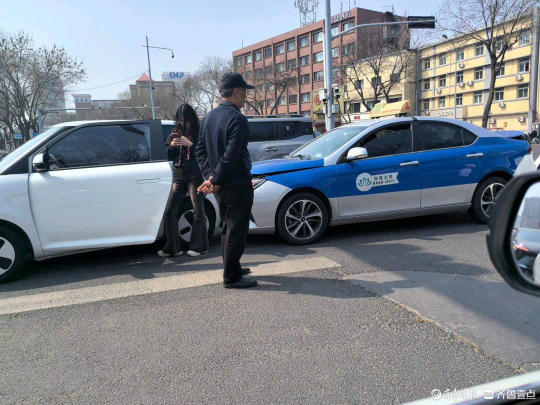 情报站|济南堤口路东口一辆私家车和出租车相撞,出租车车头受损