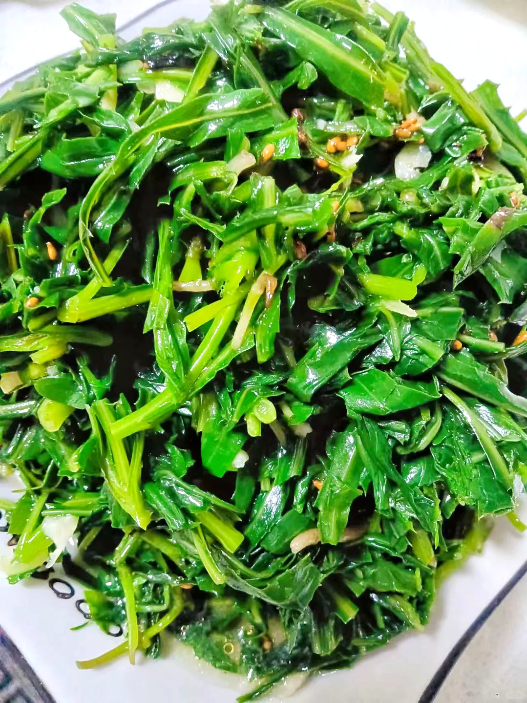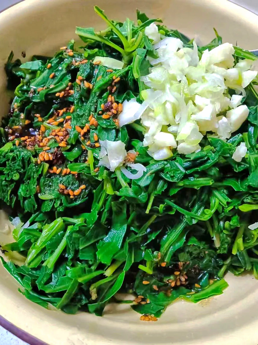 苦菜最有代表性的吃法就是凉拌。将新鲜的苦菜洗干净,开水轻焯一下去除涩味,捞出沥干切段。蒜瓣拍碎切末,加入醋、生抽、香油和少许白糖调成汁,浇在苦菜上拌匀即可。
