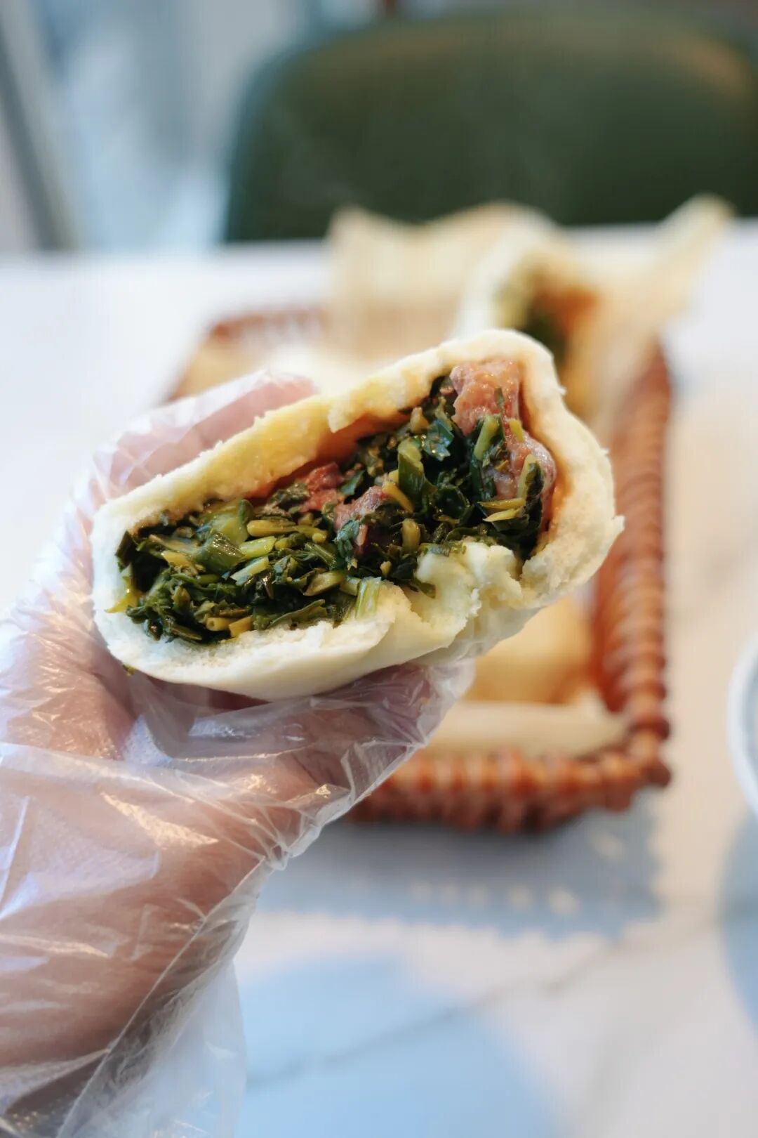 刚出锅的包子外皮松软,馅料鲜香,山麻楂的清鲜中和了花肉的油腻,一口下去,鲜润细腻,满嘴都是春天的山野气息。