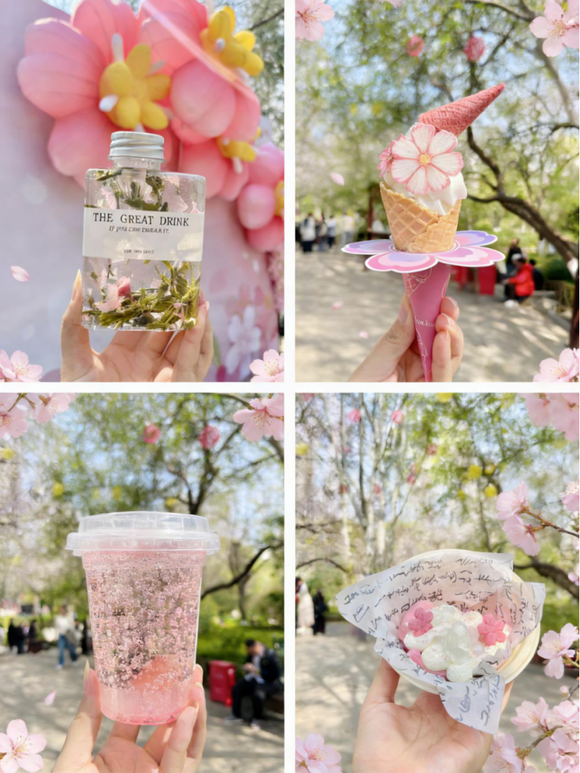 现场,樱花主题市集更是人气火爆,热闹非凡。非遗手作摊位前人头攒动,传统匠心之美吸引游客驻足体验;樱花甜品、泉水文创、特色美妆等摊位琳琅满目,各具特色的春日限定好物一应俱全,以“赏花+消费”的模式,打造沉浸式浪漫游园体验与多元化主题消费场景。