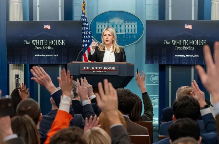 3月4日,在美国首都华盛顿,白宫新闻秘书莱维特出席记者会。新华社发