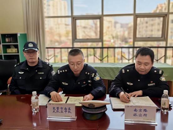 交管市南区大队五中队邱队长表示,交通护学不仅是秩序维护,更是对儿童出行权利的尊重与守护。中队将持续优化上下学高峰交通保障,打造“益童”护学通道,让每一条上学路都充满温度与安全感。立足学校“生涯规划课程”的建构实施,交警中队将与学校共同开发“小交警”职业体验课程,交警叔叔定期走进课堂,为学生讲解交通指挥手势、交通标志识别、道路安全知识,让孩子们在角色扮演中理解规则、敬畏生命。