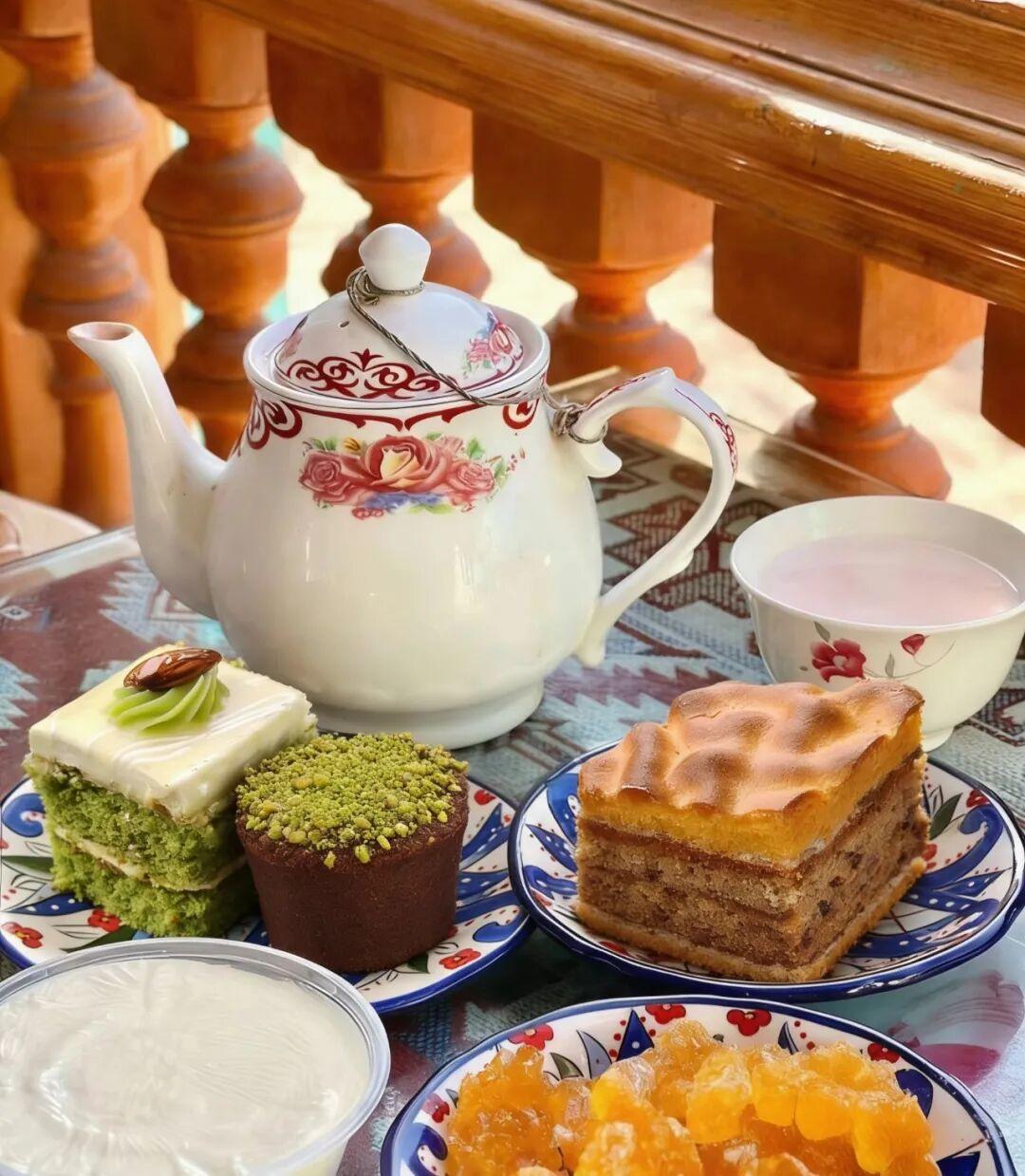 百年老茶馆里的茶点。喀什地区融媒体中心 记者曹宇婷 摄