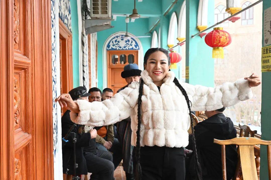 百年老茶馆里随音乐跳舞的店员。喀什地区融媒体中心 记者曹宇婷 摄
