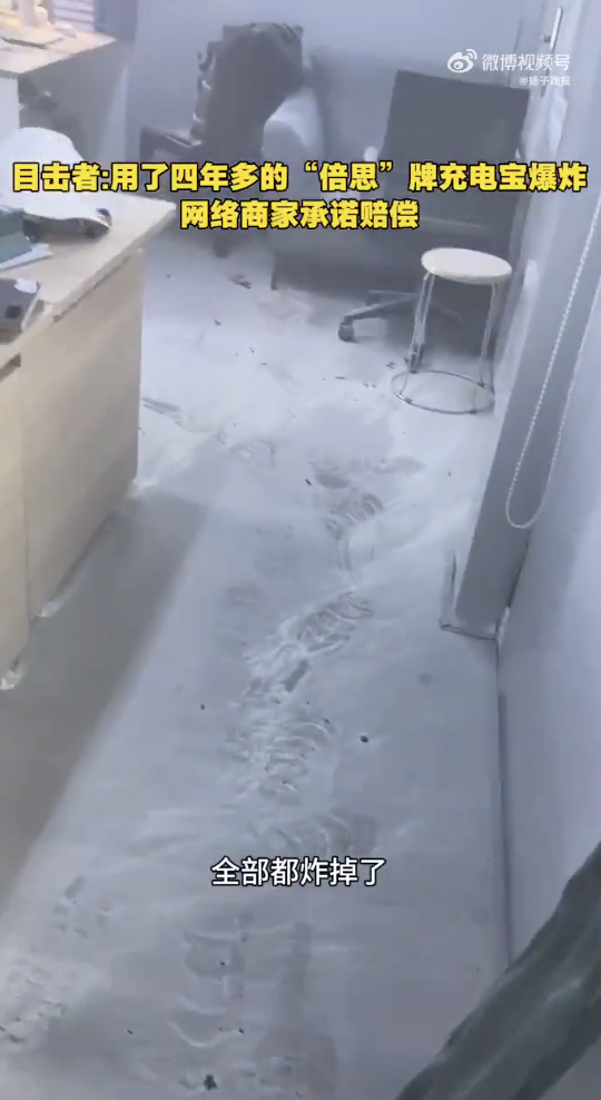 据网友透露,这款爆炸的充电宝为网购的“倍思”品牌,已使用了四年多。爆炸时,充电宝既未连接充电设备,也无人触碰,就这样静静地放置在桌上却突然自爆。目前,充电宝的持有者已联系网络商家,对方承诺进行赔偿,但具体处理细节当事人并未透露。
