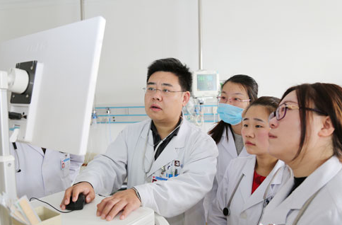 辛毅(左一)及其团队讨论患儿病情