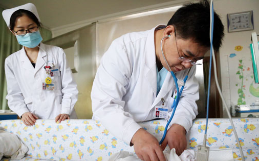 辛毅为患儿做检查