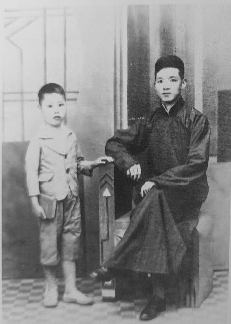 1934年,娄井海在上海香山路小学读书,与父亲的合影。