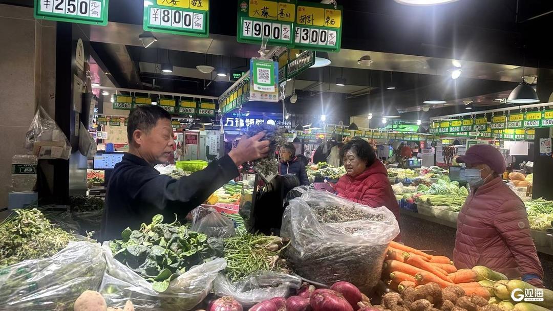 春日的烟火气,也藏在菜市场的新鲜滋味里。在有着六百余年历史的浮山所市集,随着气温回升,各类春菜已抢占摊位“C位”,苔菜、荠菜、面条菜等时令鲜蔬色泽翠绿、鲜嫩水灵,成为市民争相选购的“春日限定”。