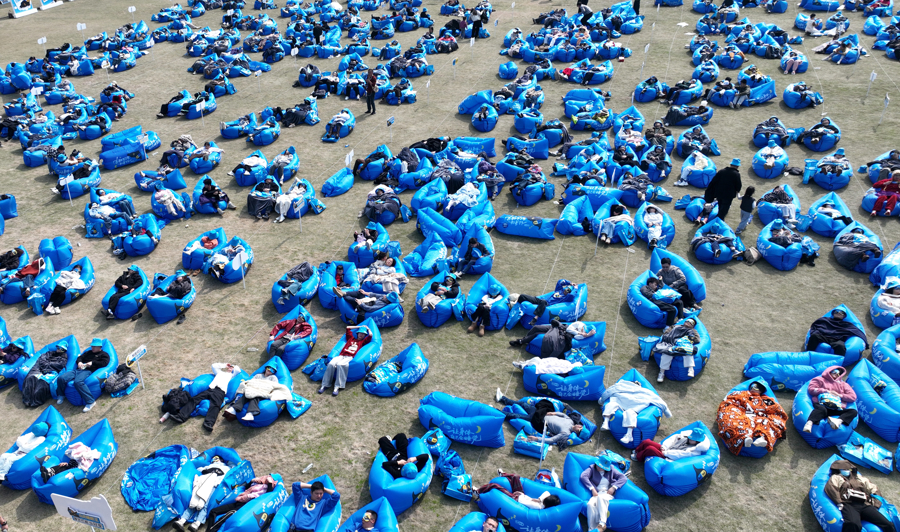 3月21日是第26个世界睡眠日,当天下午,一场别开生面的睡眠挑战赛在德清莫干山国际旅游度假区郡安里的草坪上温情启幕。一千张蓝色充气沙发整齐排列,现场没有传统赛事的紧张与喧嚣,只有山野清风相伴的宁静与惬意。在这里,没有速度与力量的比拼,唯一的“竞技”,便是谁能更快放松、更好入眠。