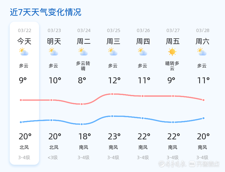 明天3月23日,聊城市的天气仍为多云,气温在10℃到20℃之间,北风转为<3级。与今日相比,风力有所减弱,气温变化不大,市民可继续保持当前的出行安排。