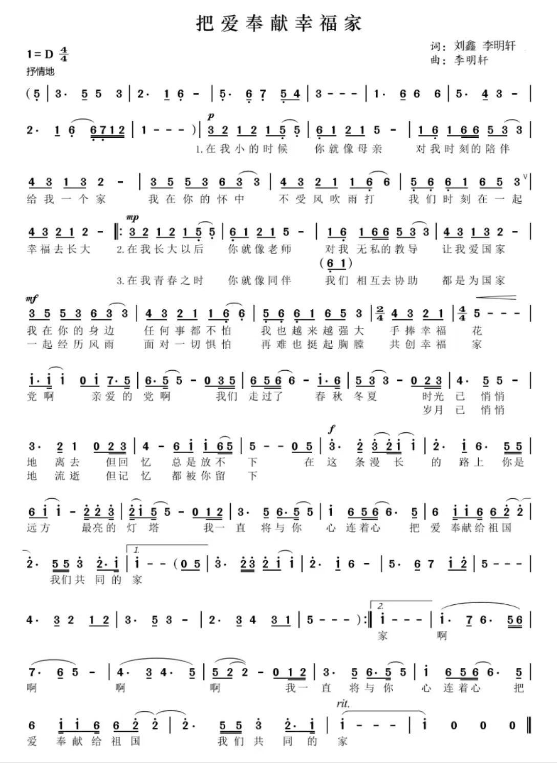《把爱奉献幸福家》作词:刘鑫李明轩 作曲:李明轩(2025济南原创音乐作品征集评选歌曲作品组二等奖)