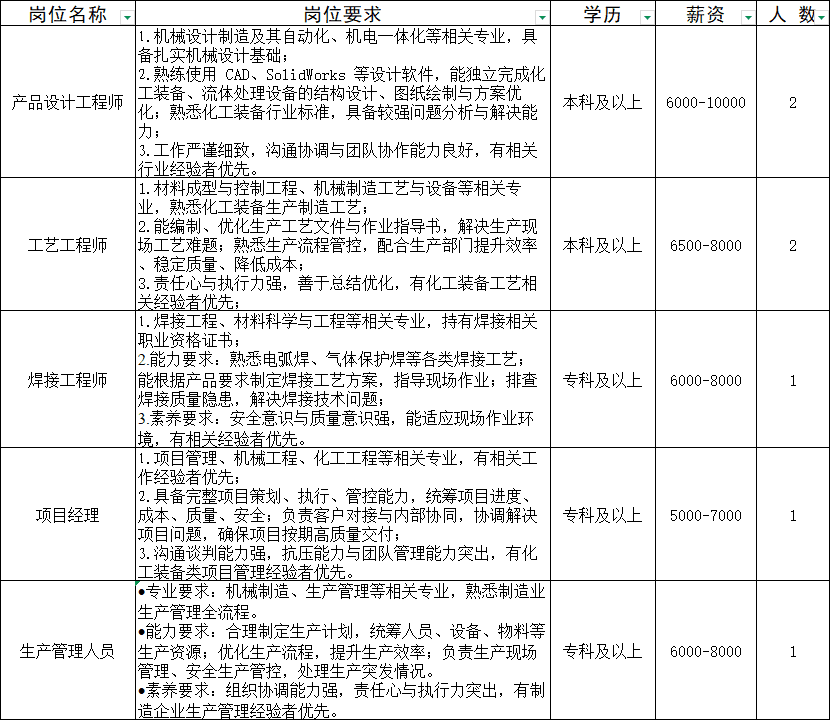 凯美科装备(山东)有限公司坐落于山东省日照高新区,是一家专注于高端智能化工与流体处理装备研发、制造、销售及技术服务的创新型制造企业。公司服务精细化工、制药、环保水处理等领域,主营智能装备、机械电气设备、气液分离设备、加药装置、计量投加系统等产品,凭借高精度、高稳定性,提供整体解决方案,并配套设备维修、智能水务系统开发等服务。公司与青岛科技大学机电工程学院校企合作,深耕技术创新与成果转化,持续提升产品智能化水平与核心竞争力,致力打造高端化工装备智造产业基地。公司重视人才培养,提供稳定环境、清晰职业路径与广阔晋升空间,诚邀踏实进取、勇于创新人才加盟,共筑实业未来。