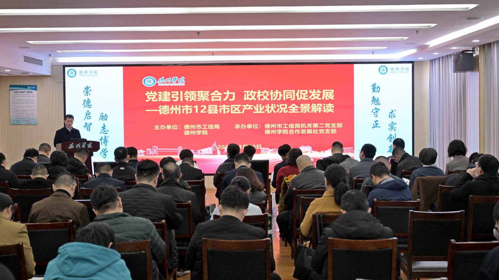 3月20日,“党建引领聚合力 政校协同促发展——德州市12县市区产业状况全景解读”活动在德州学院举行。德州学院党委委员、副校长李甲亮,德州市工信局党组书记、局长孙洪魁参加活动。