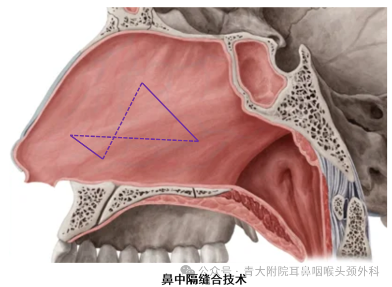 而现在,青大附院鼻科团队采用的鼻中隔缝合技术,堪称一场“微创革命”。医生在鼻内镜的清晰视野下,使用精密的缝合针线,直接将分离的鼻中隔黏膜瓣进行贯穿缝合、对位固定。这种方式就像给手术部位上了几道牢固且精准的“内拉链”,既达到了稳固鼻中隔、杜绝术后出血的目的,又彻底解放了被堵塞的鼻腔。患者术后不需要再用膨胀海绵塞住鼻子,手术当晚就能用鼻子呼吸,再也不用张着嘴忍受口干舌燥的痛苦。