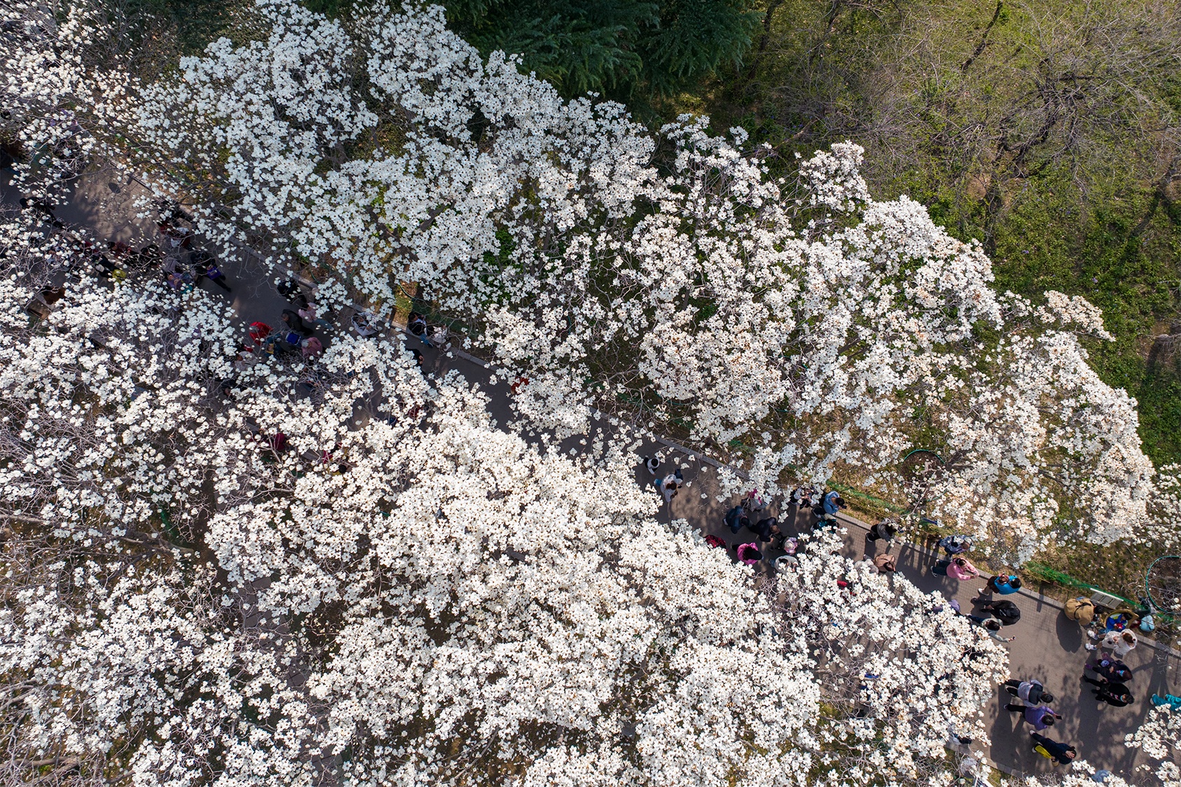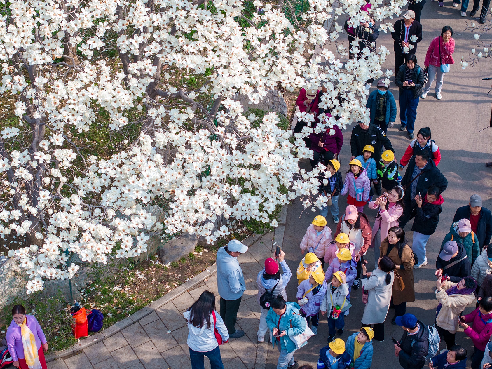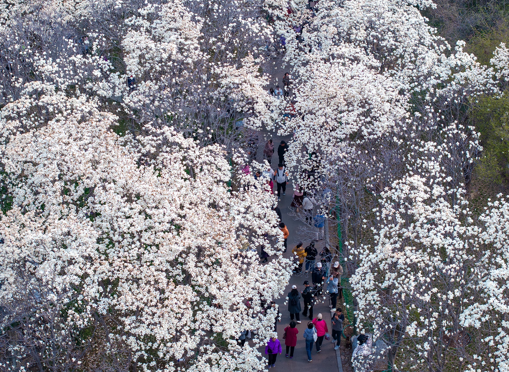 “霓裳片片晚妆新,束素亭亭玉殿春。”春风吹开了百花公园的玉兰,朵朵向上,如雪似玉,晶莹清丽,玉树琼枝,香气迷人,让人陶醉。(大众新闻记者杨润勤摄影张宝贤)