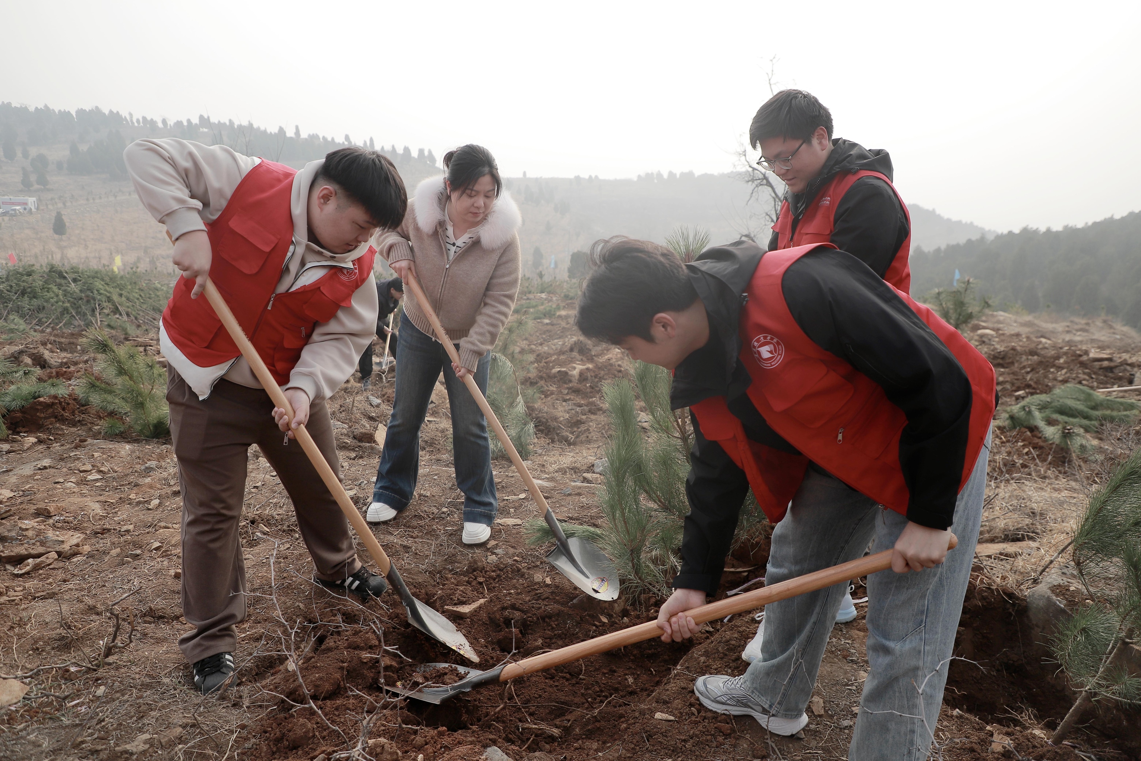 活动现场,志愿者们迅速投入劳动,自发结对分组,分工协作。挥锹铲土、扶苗定根、提水浇灌、培土压实,各环节衔接有序、配合默契,展现出新时代青年学子良好的精神风貌和实干担当。