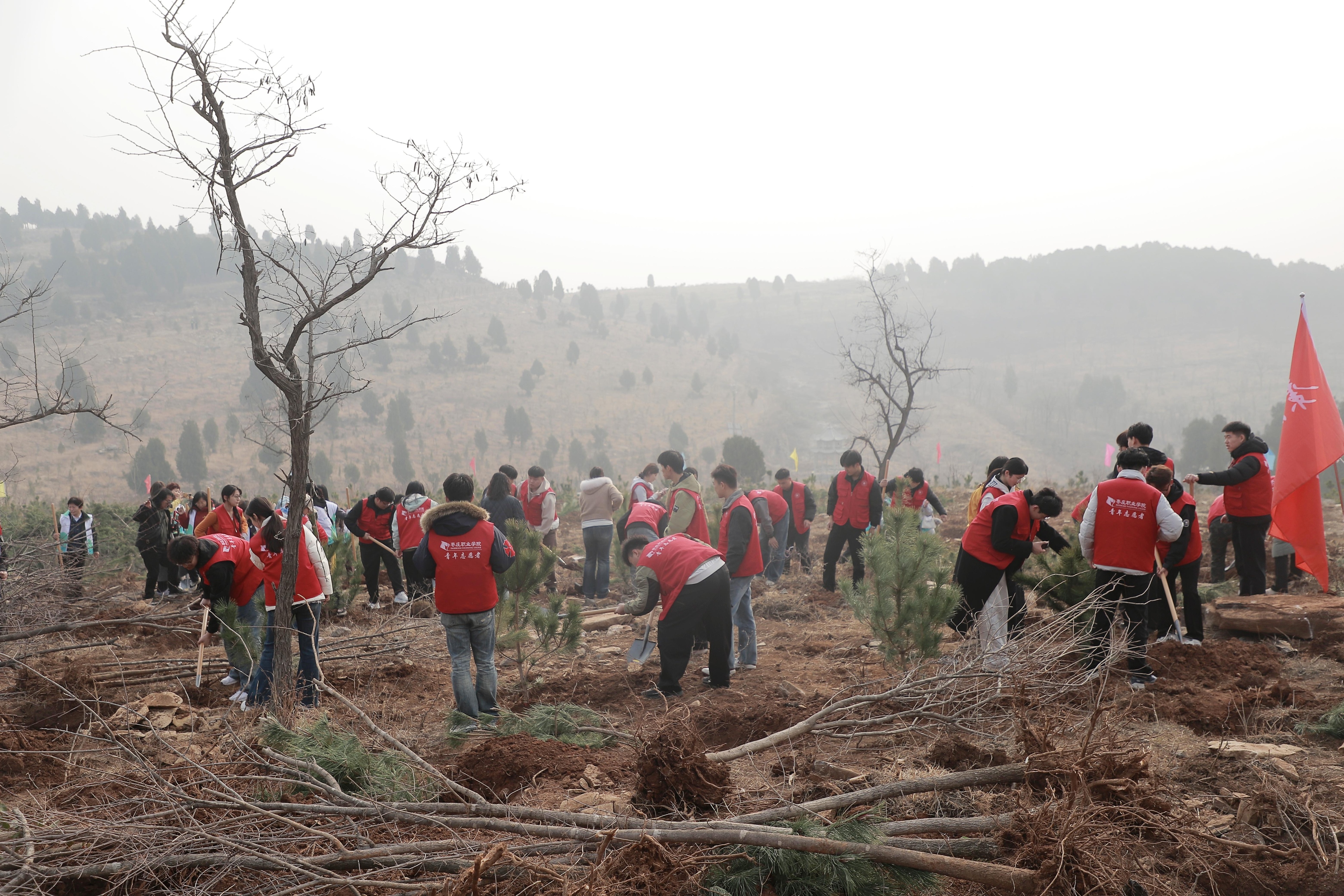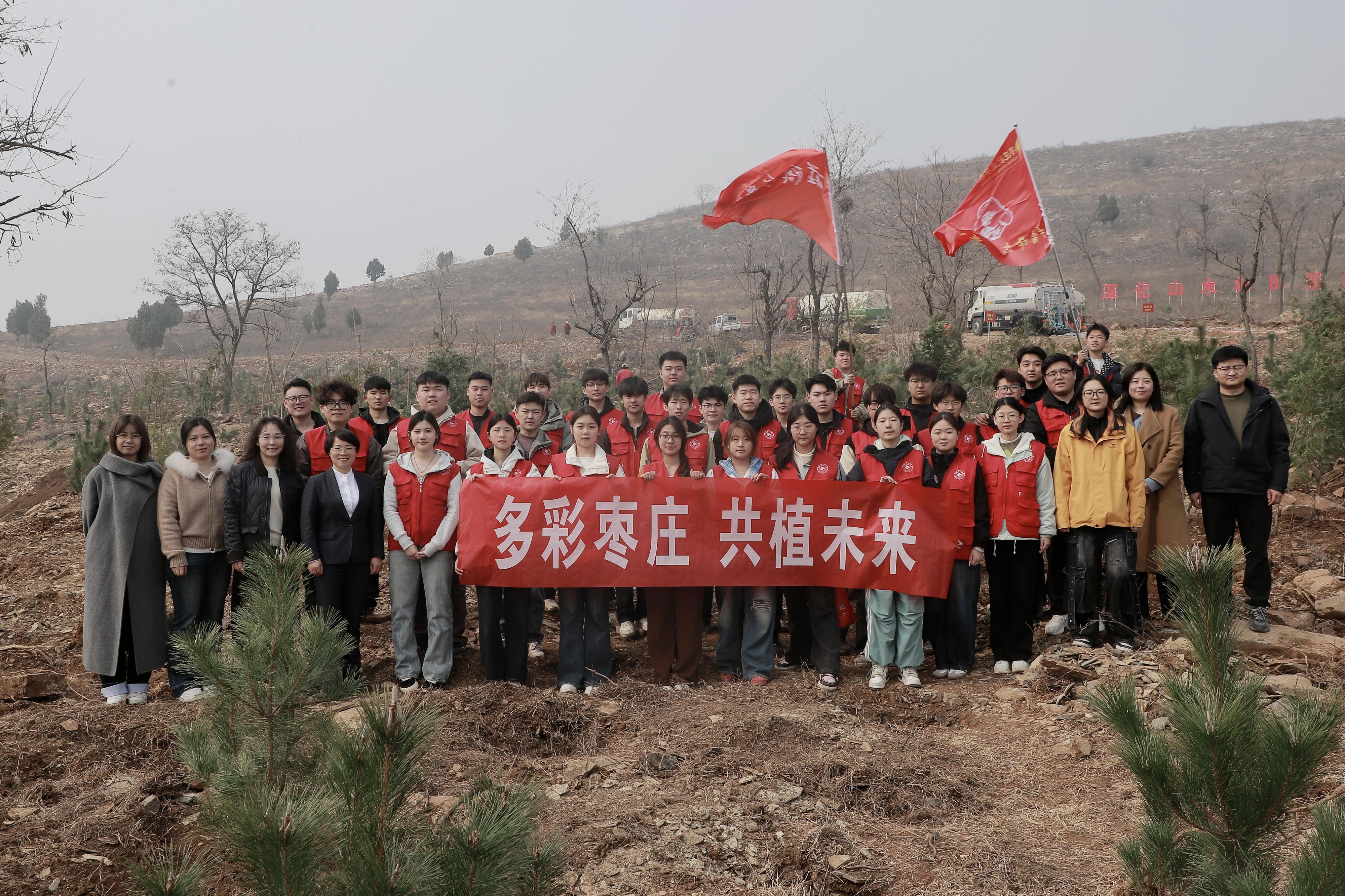 枣庄职业学院组织青年学生代表参加枣庄市春季植树活动