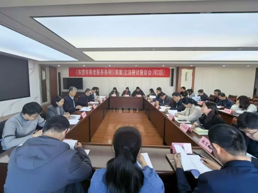 下午,《东营市养老服务条例》调研组在河口区开展专题座谈。针对人口老龄化新形势、养老服务新需求,参会代表聚焦居家社区养老、机构养老规范、医养结合发展、养老服务监管、特殊老年群体保障等关键环节,提出务实可行的意见建议。