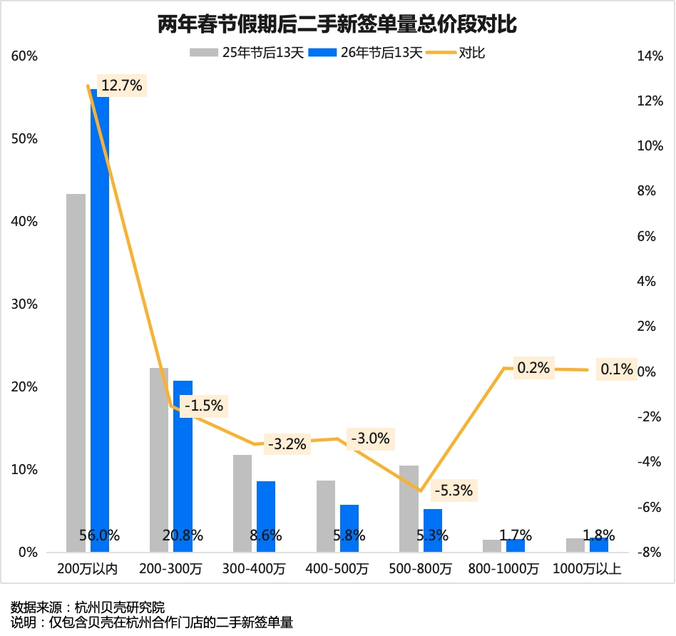 春节以来,杭州成交的二手房中刚需占比较大。(来源:杭州贝壳研究院)