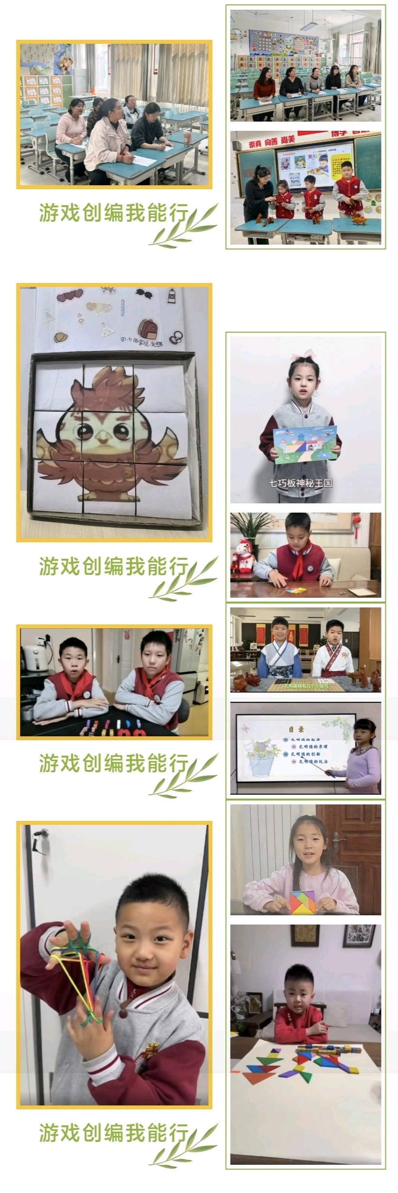 玩法创编中,围绕十二大类传统益智游戏,同学们化身“小小创编师”,大胆研发新翻法、新摆法、破解新阵型,以“小老师”视角录制讲解视频,清晰演示操作步骤、拆解技巧要点,深度挖掘背后的数学原理。