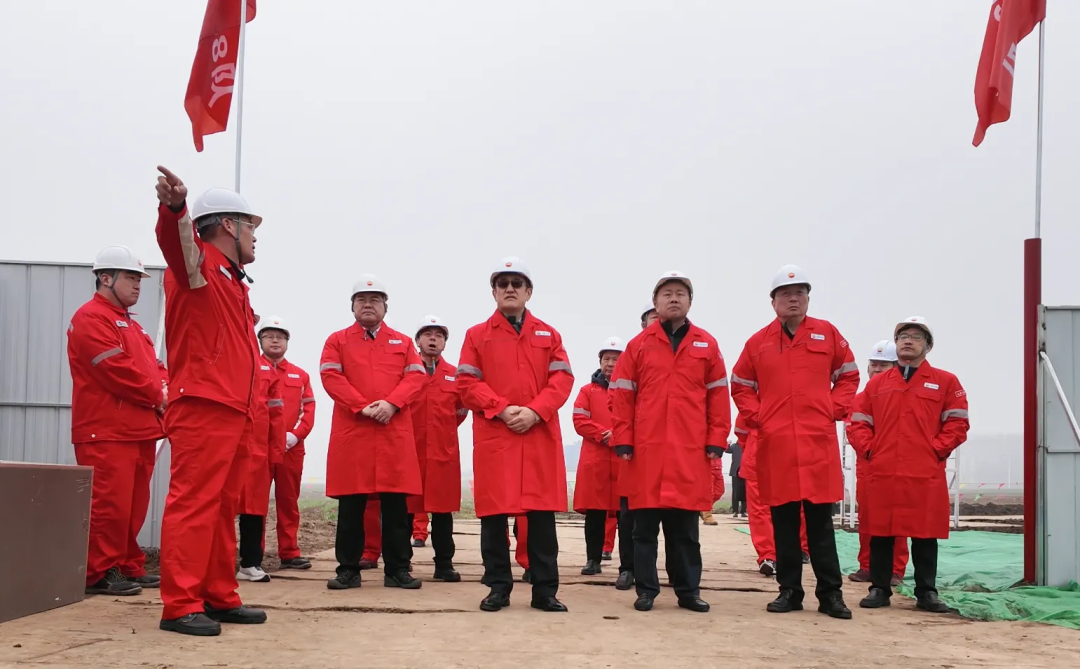 调研现场,高长生一行深入施工场地、办公区及规划点位,查看施工布局、安全管控等情况,详细了解井位布局和施工进度,并向一线建设人员表示慰问。他要求,要严格按照中石油储气库井工艺和技术要求,提高施工和固井质量,为后续采卤和储气库建设奠定坚实基础。安丰春对肥城市、经开区政府及山东发展集团给予项目的大力支持表示感谢,并明确提出“2026年实现注气投产,年内完成全流程运营”的工作目标。