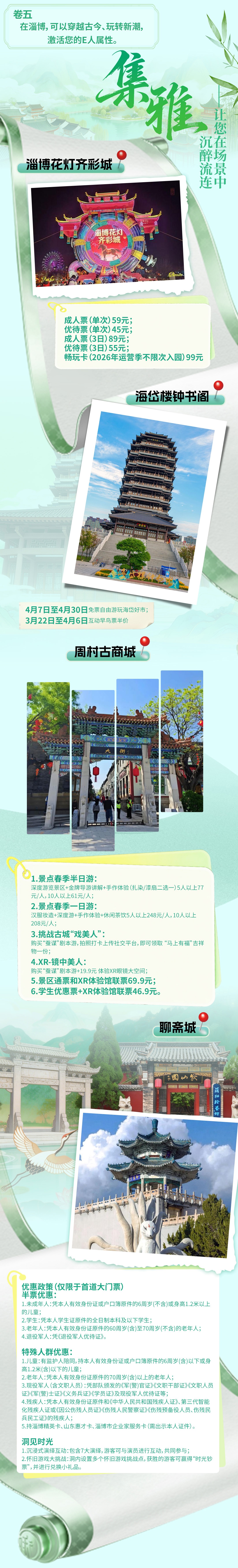 “集雅卷”汇聚丰富文旅活动,兼顾古风与新潮:4月底淄博剧院“梦幻聊斋”主题演出季将上演奇幻故事,红叶柿岩《奇幻聊斋》沉浸式体验让游客走进蒲松龄笔下的世界,海岱楼钟书阁花朝节再现传统民俗,周村古商城剧本杀则让游客在角色扮演中穿越古今,让春日之旅充满文化韵味。