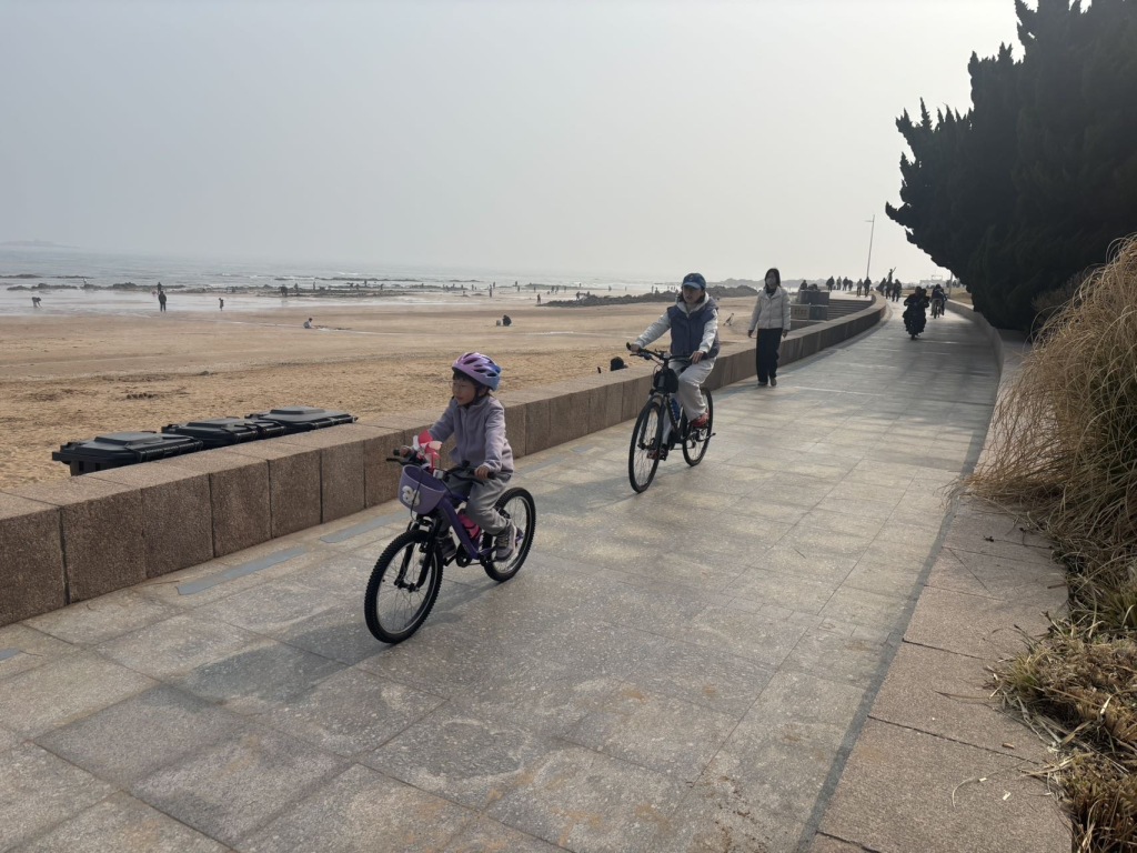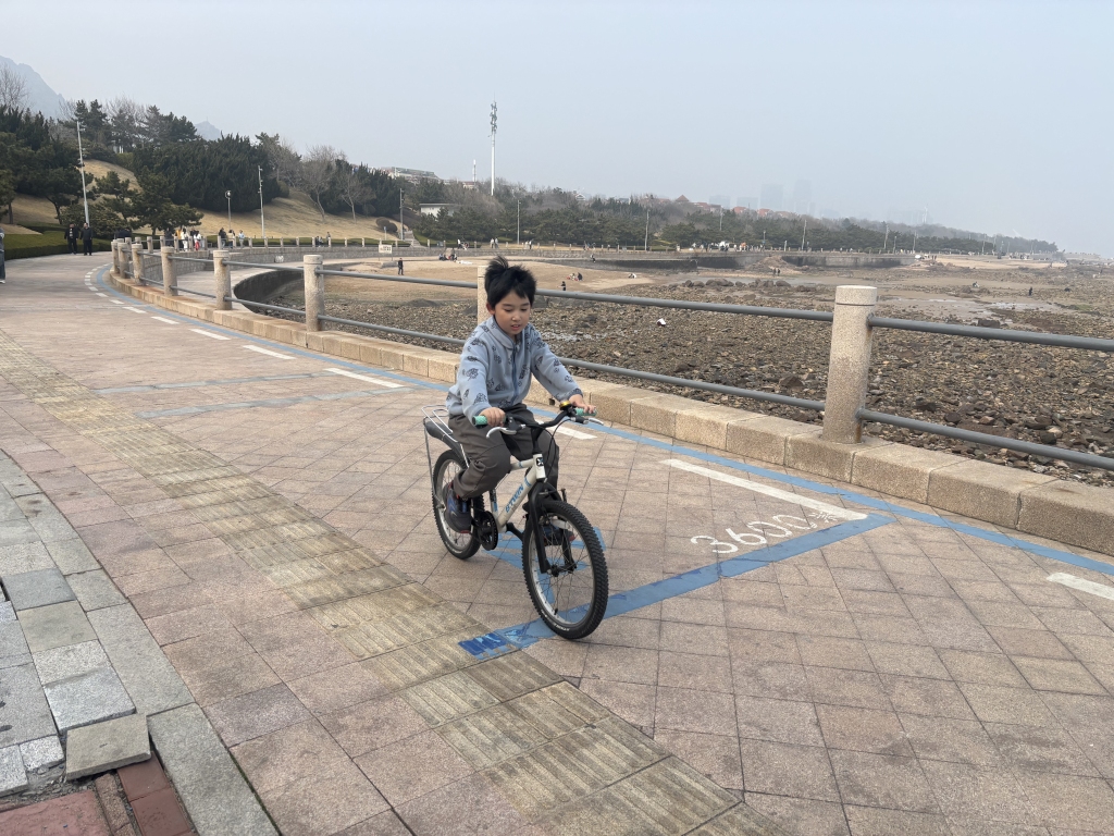3月22日下午,天气晴好、气温宜人,不少家长带着孩子来到青岛雕塑园海边,开启春日户外时光。孩子们骑着自行车,沿着海岸线自在穿梭,一边欣赏碧海蓝天的海滨风光,一边尽情享受骑行的快乐。趁着舒适的春日天气,不少家长特意带孩子走出家门,在亲近自然、感受春日气息的同时,也通过骑行运动增强体质、放松身心,度过一段温馨又健康的亲子时光。(半岛全媒体记者何毅)