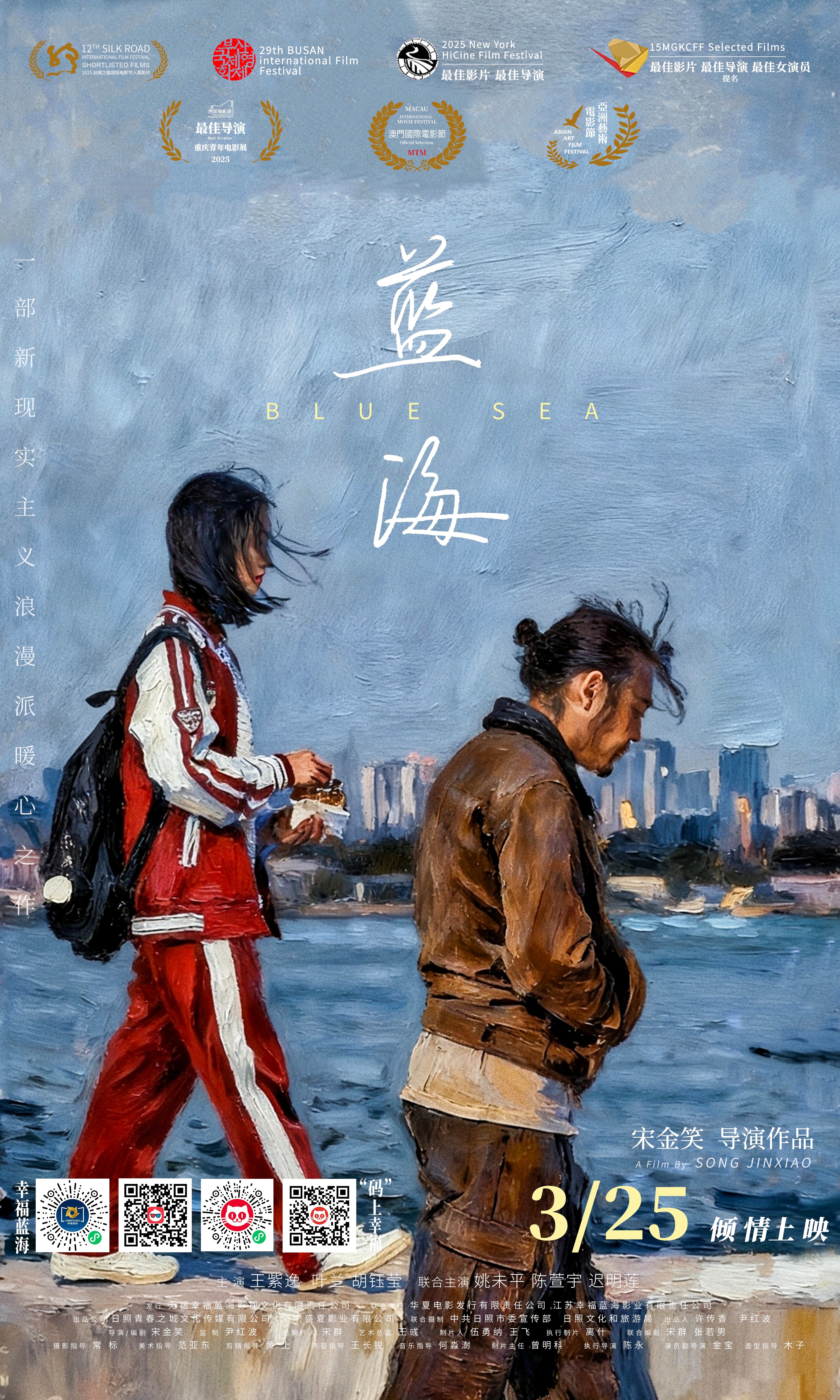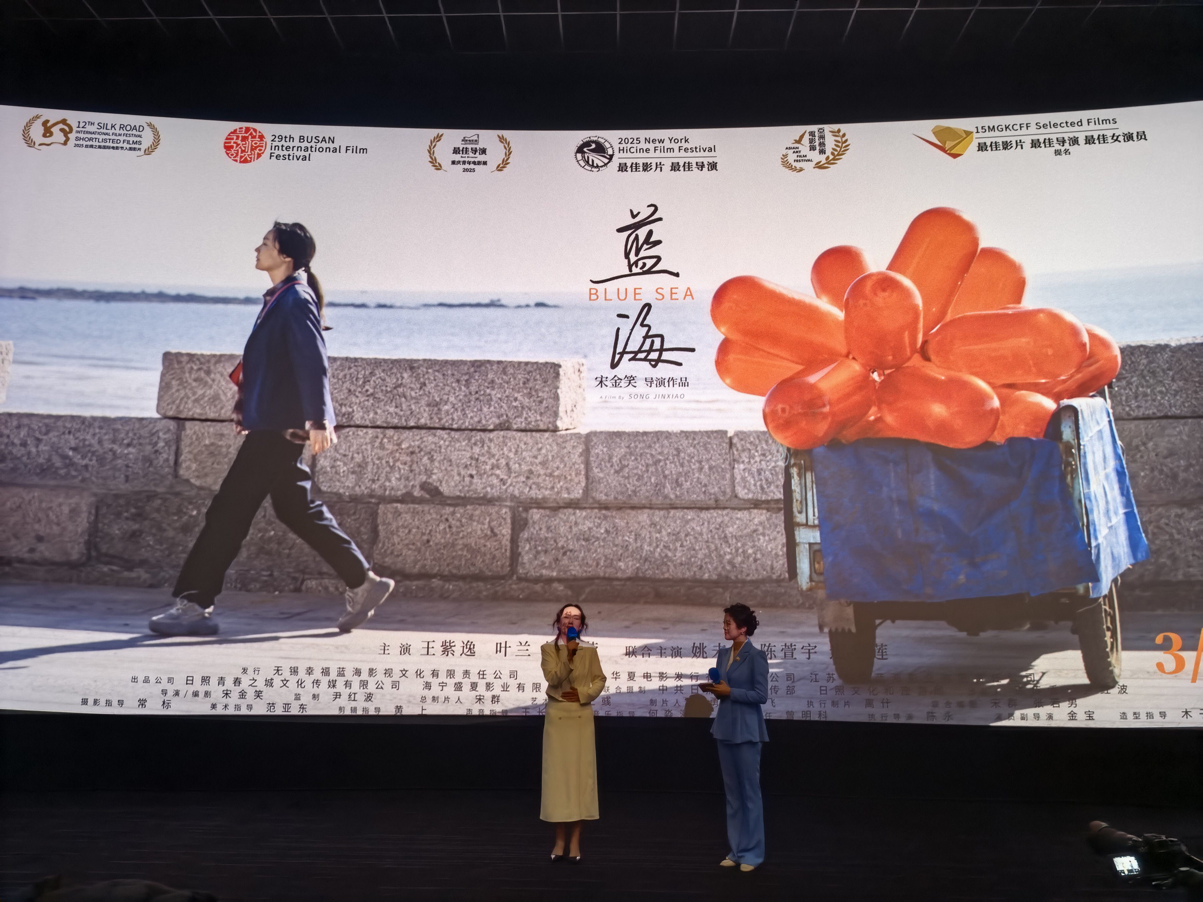电影《蓝海》聚焦非遗传承与人间温情,讲述了以茂腔为生的母女在生活中相互扶持、坚守热爱的暖心故事。影片自创作以来便备受业界关注,先后入围第29届釜山国际电影节“亚洲之窗”单元、亮相第78届戛纳国际电影节中国电影联合展台,并斩获2025纽约华语电影展最佳华语片与最佳女导演两项大奖,获得第十二届丝绸之路国际电影节“金丝路奖”主竞赛提名、第十五届金考拉国际电影节多项提名等荣誉,还顺利走进哈佛大学开展校园路演。