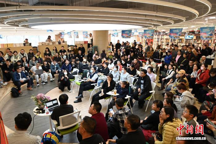 呼和浩特新华书店内,“龙虾”巡装活动现场人头攒动。中新网记者 刘文华 摄