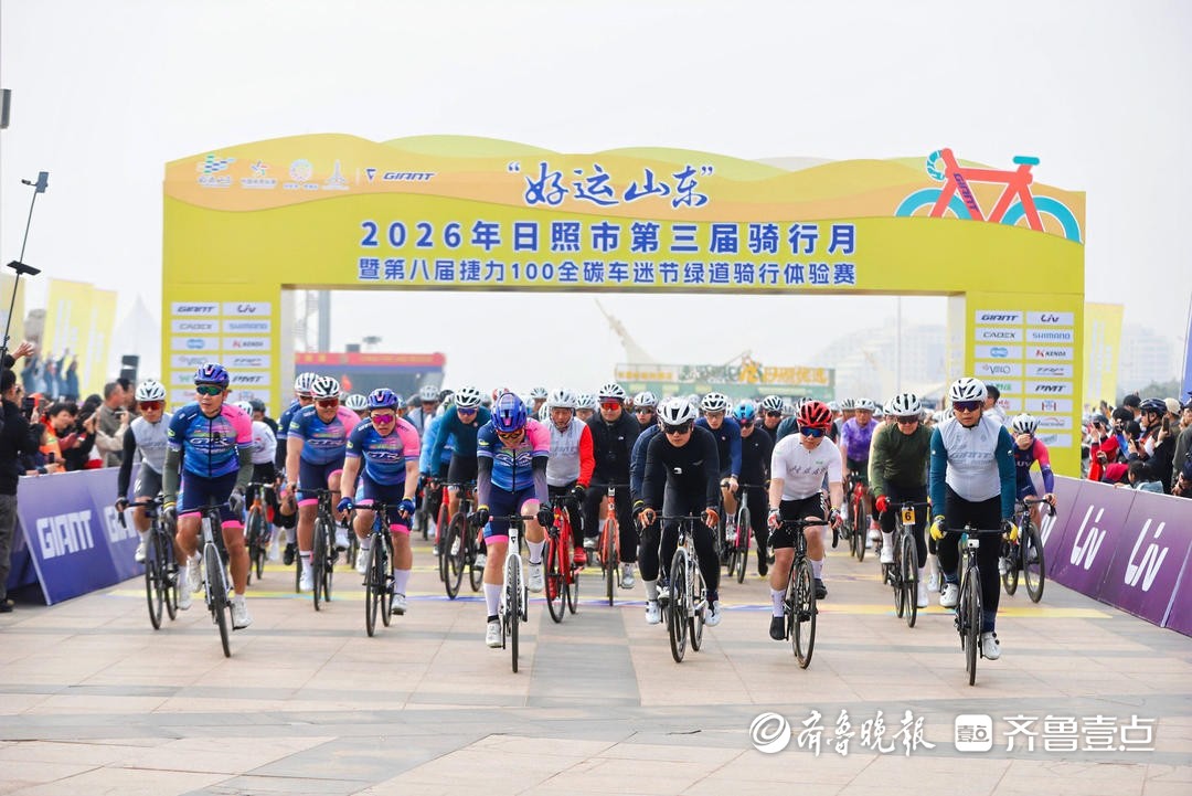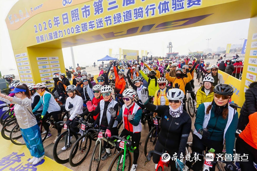 3月22日上午,2026年日照市第三届骑行月暨第八届捷力100全碳车迷节绿道骑行体验赛在万平口海洋公园开赛。