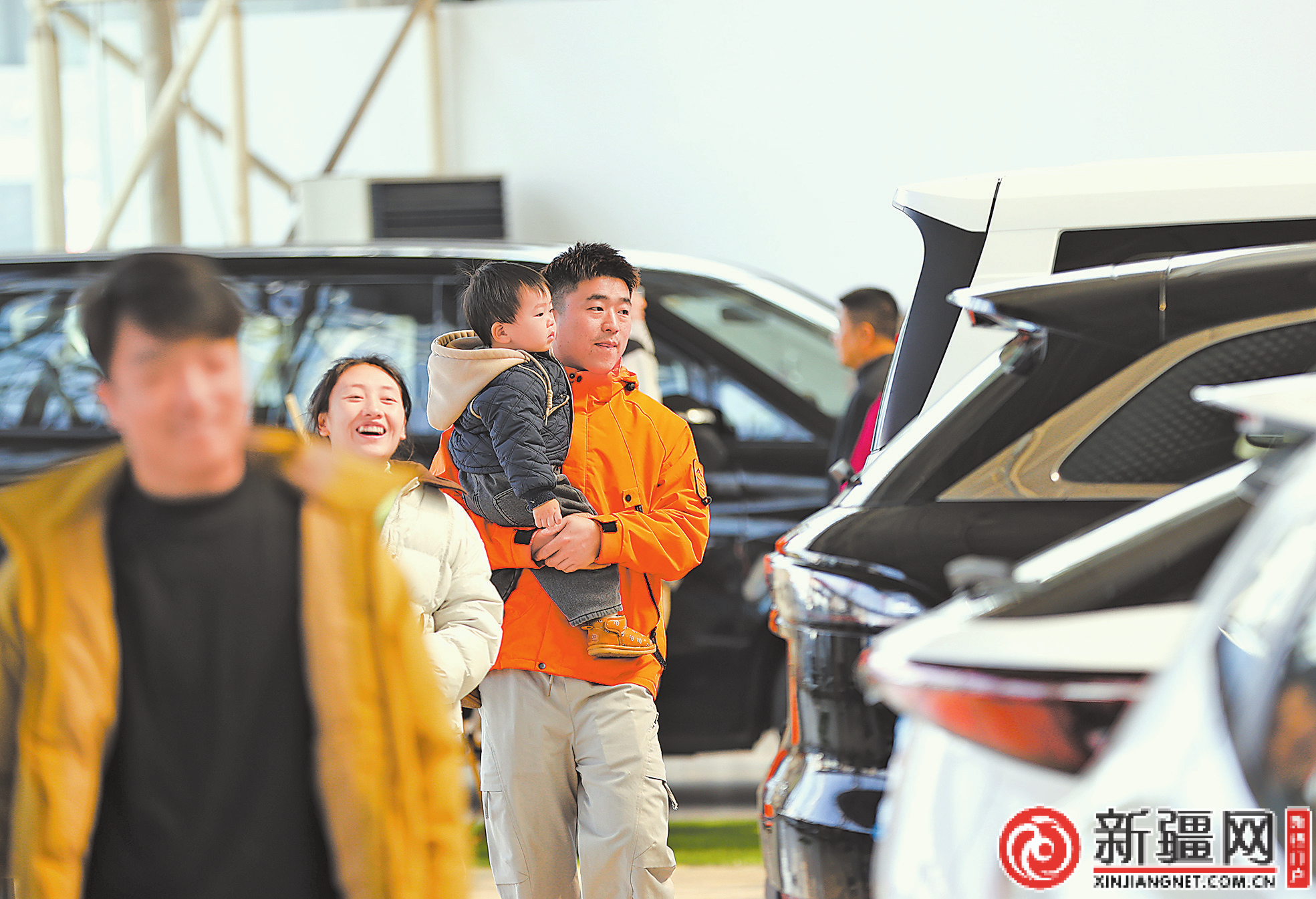 3月20日,消费者在新疆赛博特国际汽车城看车选车。(记者石磊摄)