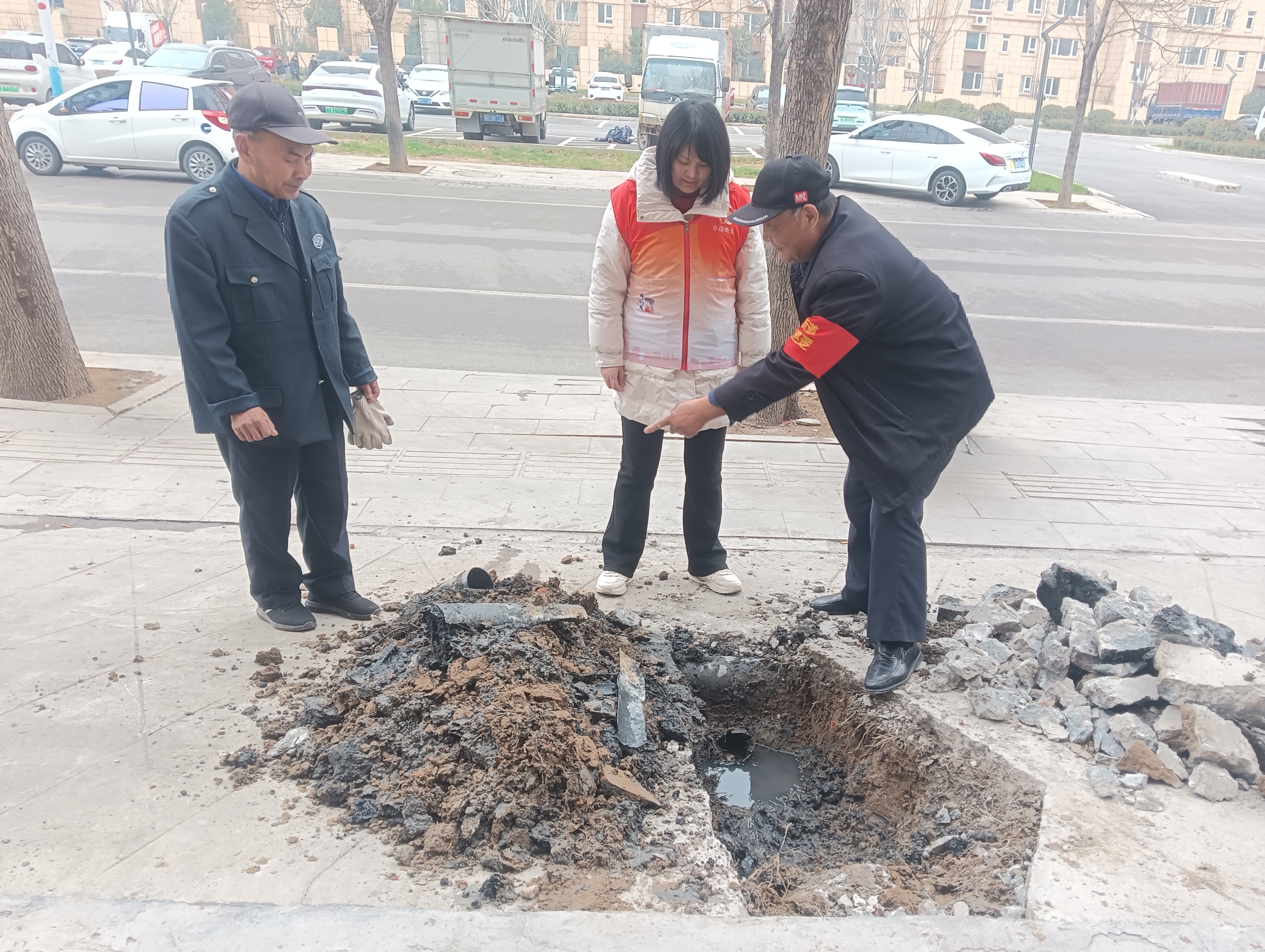 近日,中都街道闫村社区接到辖区闫村佳苑北区门面商户求助。该商户正处于装修筹备阶段,尚未正式开业,门前地面持续渗水,不仅阻碍装修进度,还存在安全隐患。
