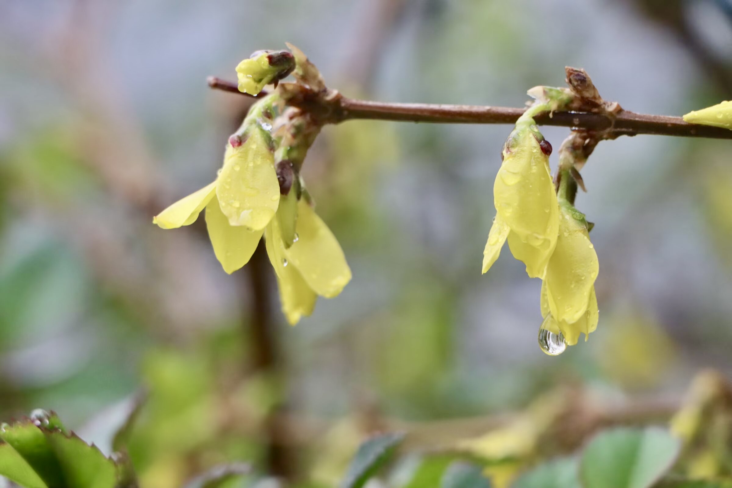 所以,如果你看到一丛“往下垂”的黄色花,那多半是迎春;如果是“往上冲”的黄色花,那就是连翘。